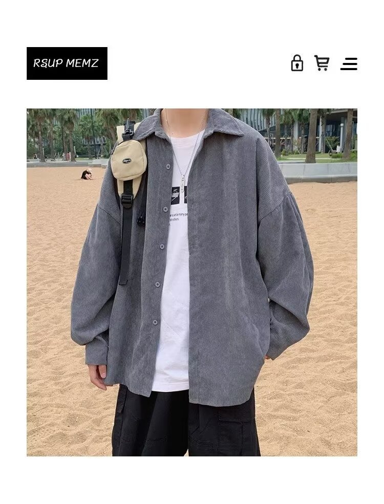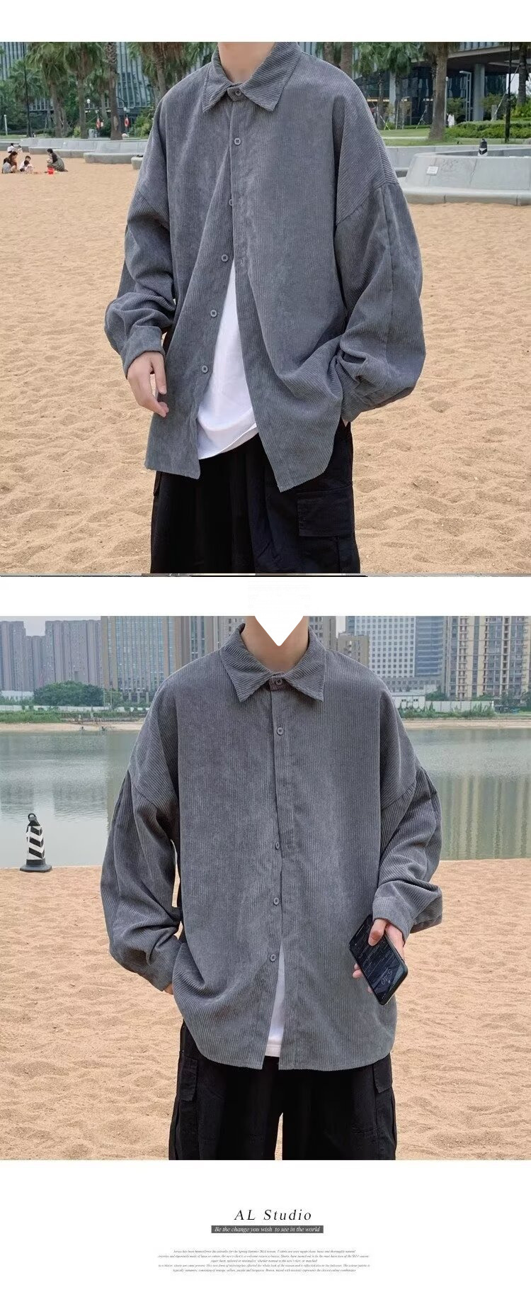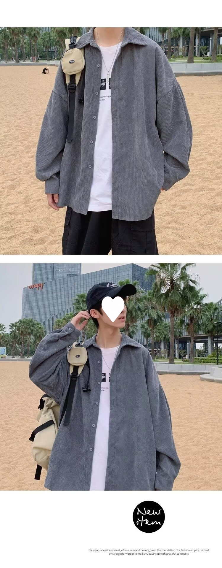 트렌디 한 코듀로이 셔츠 남자 긴팔 올매치 캐주얼 학생 느슨한 한국 스타일 잘 생긴 셔츠 봄과 가을 코트 커플스토어 가기