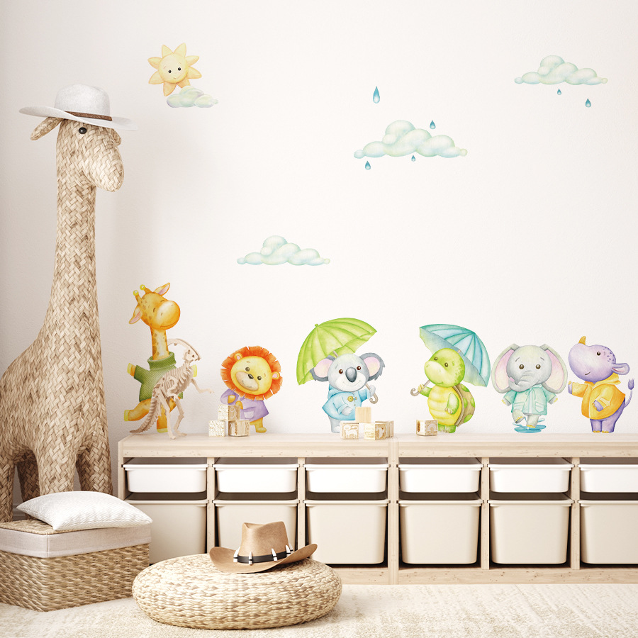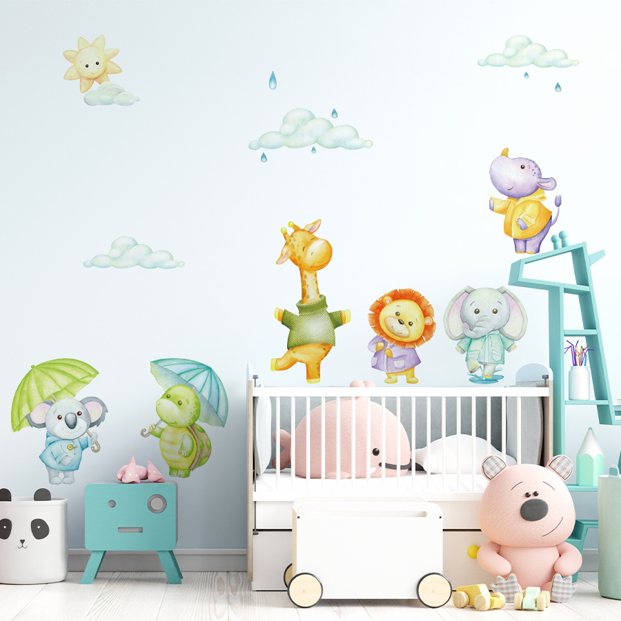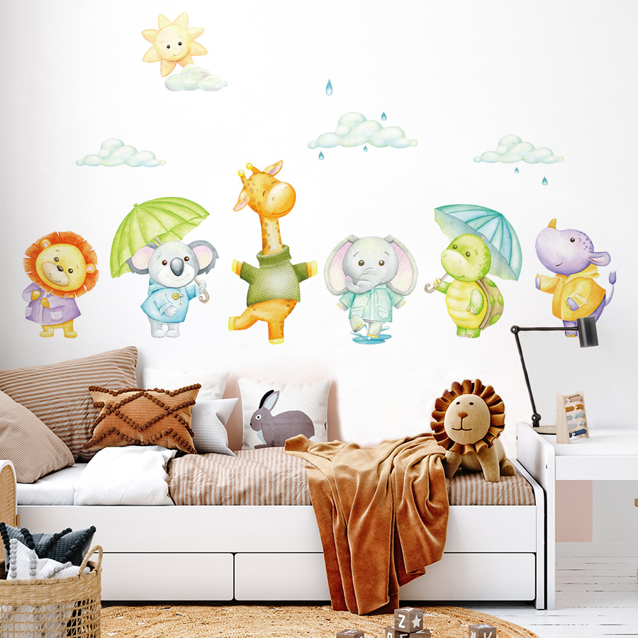 만화 태양 구름 귀여운 우산 작은 동물 자기 접착 벽 스티커 Ins 어린이 방 장식 스티커 ZN3212F스토어 가기