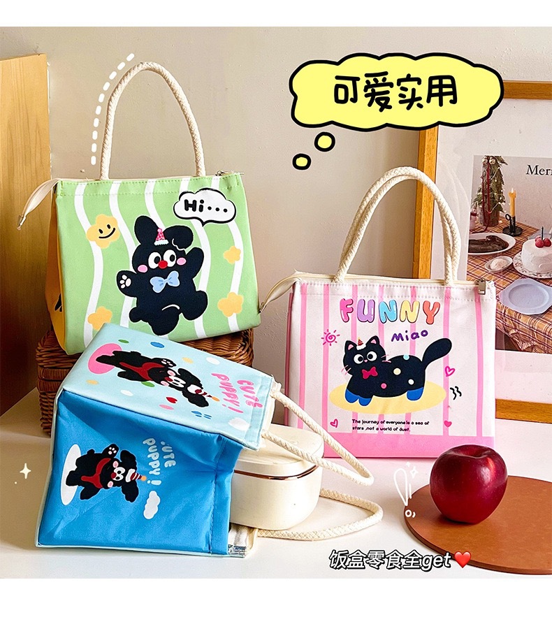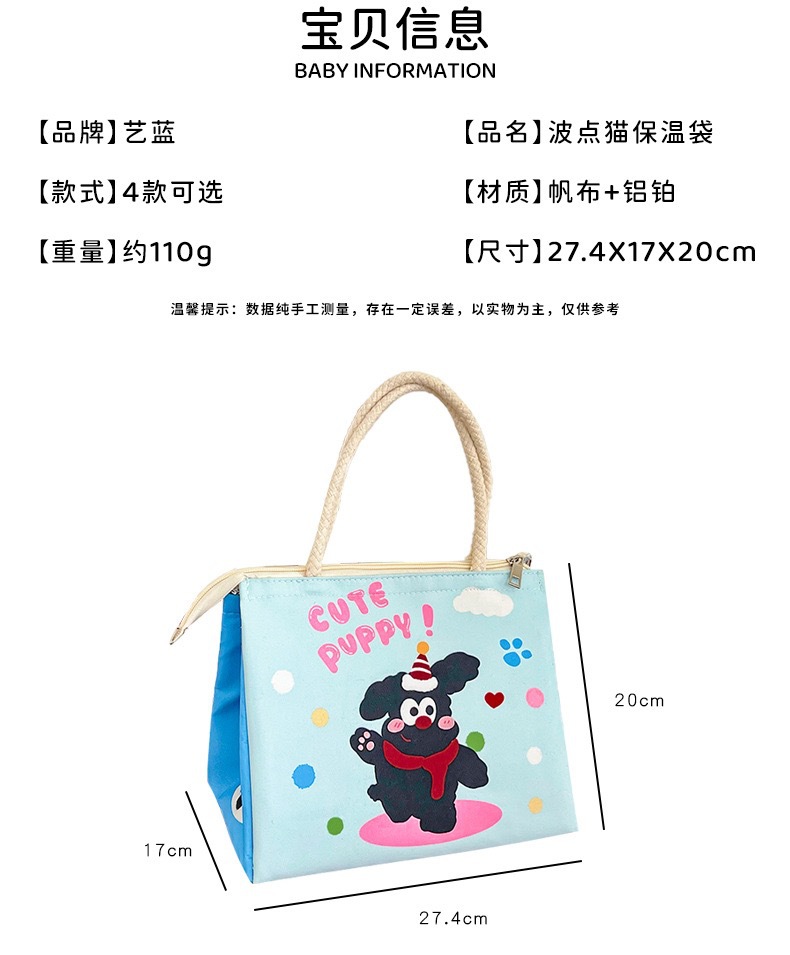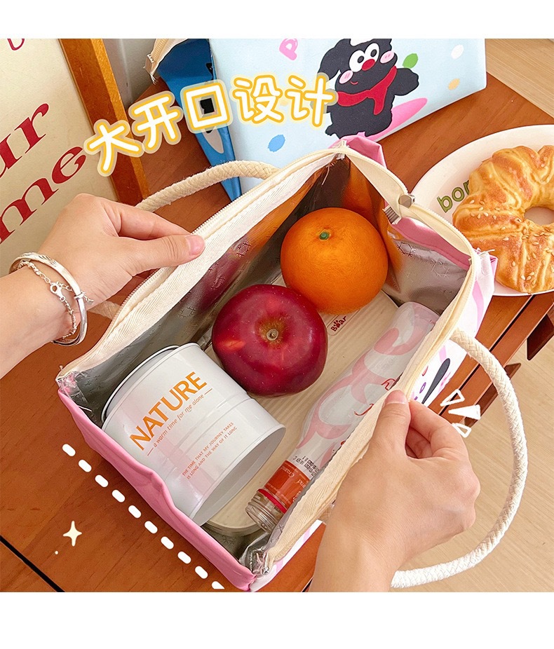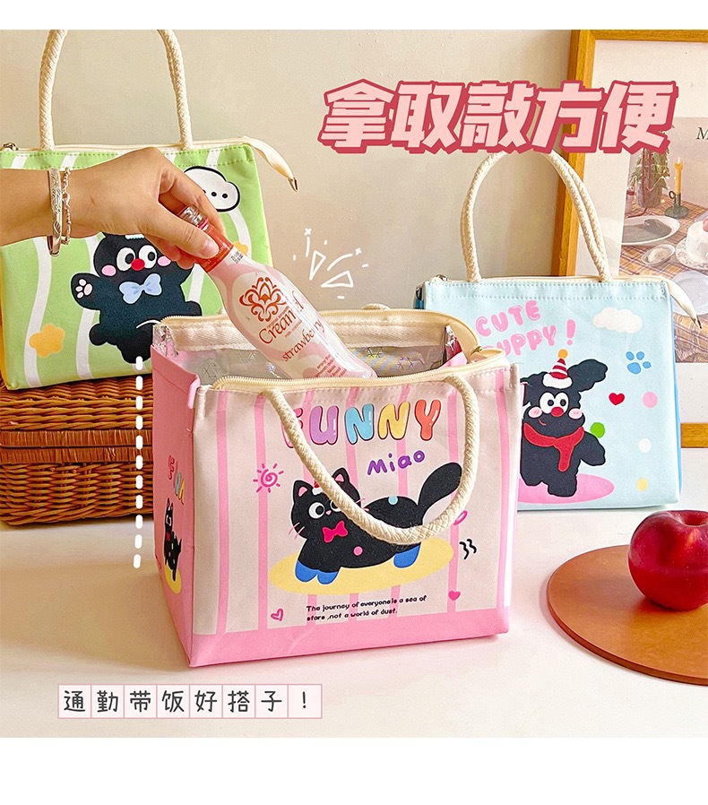 도시락 보온 가방 휴대용 대용량 두꺼운 보온 도시락 가방 피크닉 가방 아이스백 자카드 핑크 물방울 무늬 고양이스토어 가기