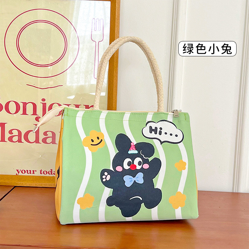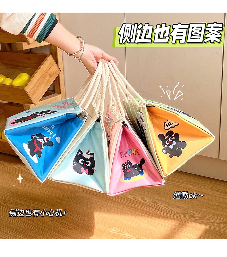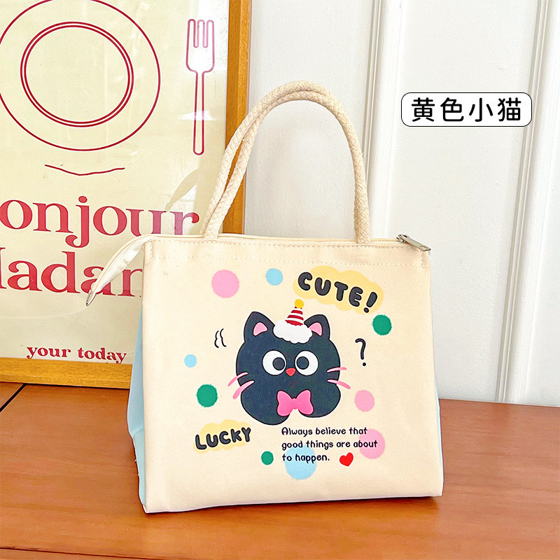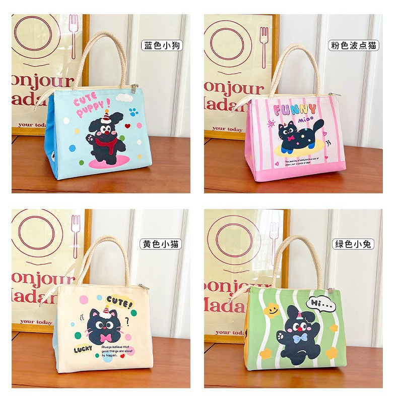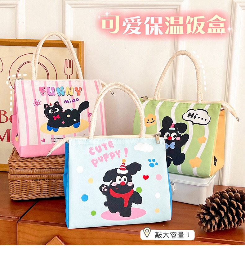 도시락 보온 가방 휴대용 대용량 두꺼운 보온 도시락 가방 피크닉 가방 아이스백 자카드 핑크 물방울 무늬 고양이스토어 가기