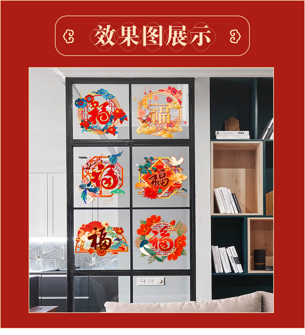 Yiyao SKJD9439 새해 창조적 인 Fuxing Gao Zhao 정전기 스티커 유리 슬라이딩 도어 배경 장식 스티커스토어 가기