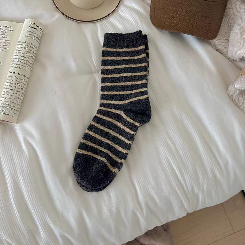 일본 패션 겨울 따뜻한 두꺼운 중간 배럴 줄무늬 두꺼운 양말 여성 양말 내 한국 양말 F스토어 가기