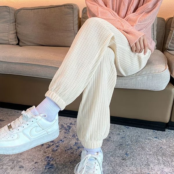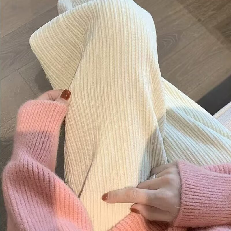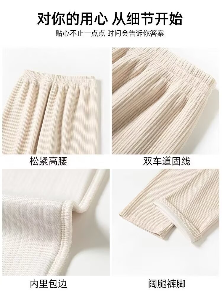수직 스트라이프 체닐 와이드 레그 바지 여성 가을 및 겨울 새로운 높은 허리 투약 느슨한 직선 캐주얼 기모 바지스토어 가기