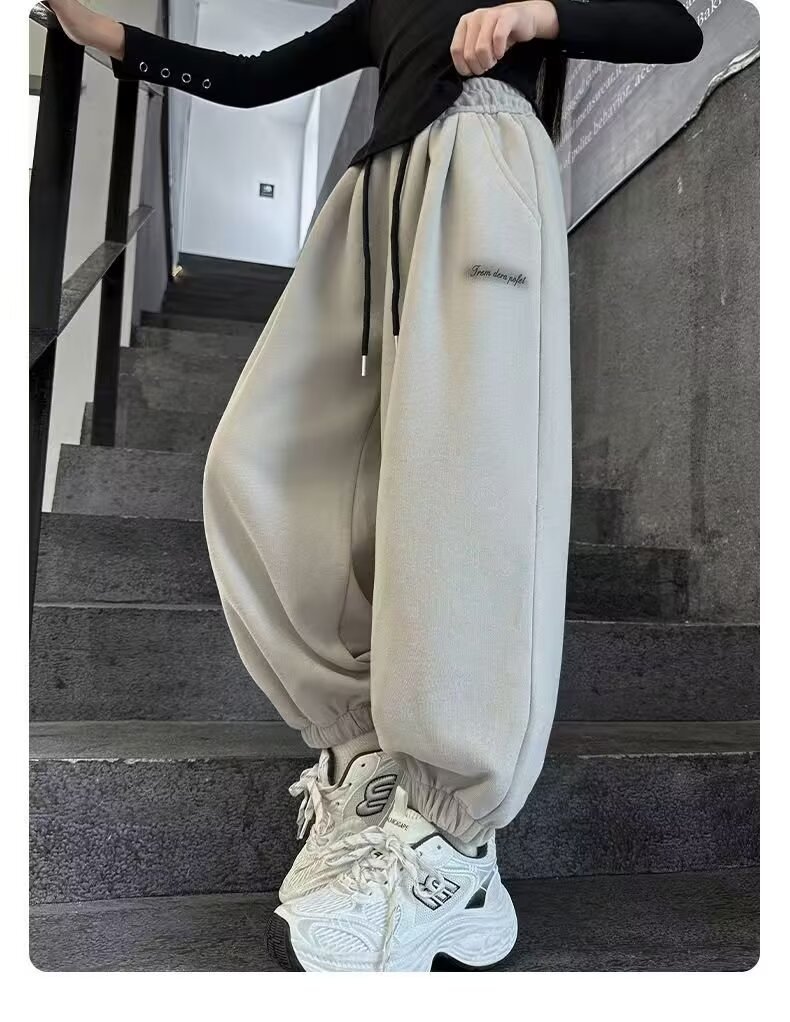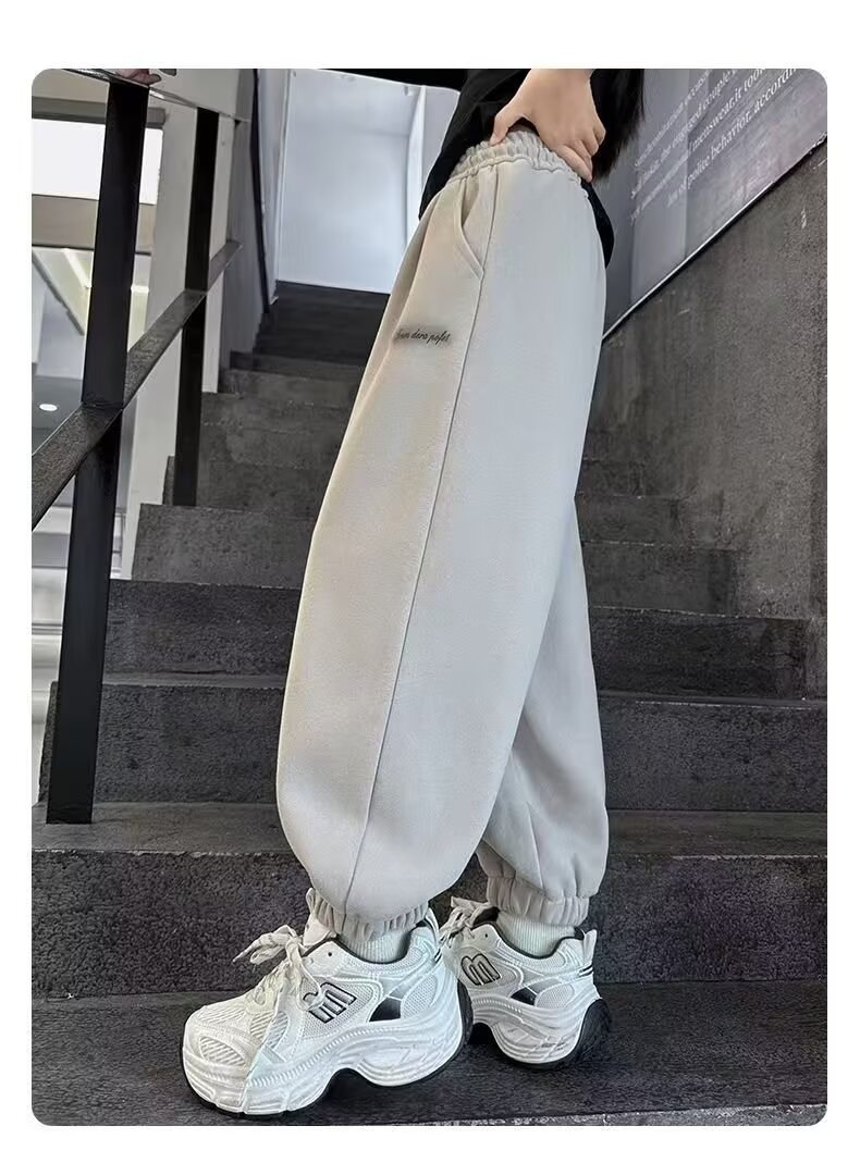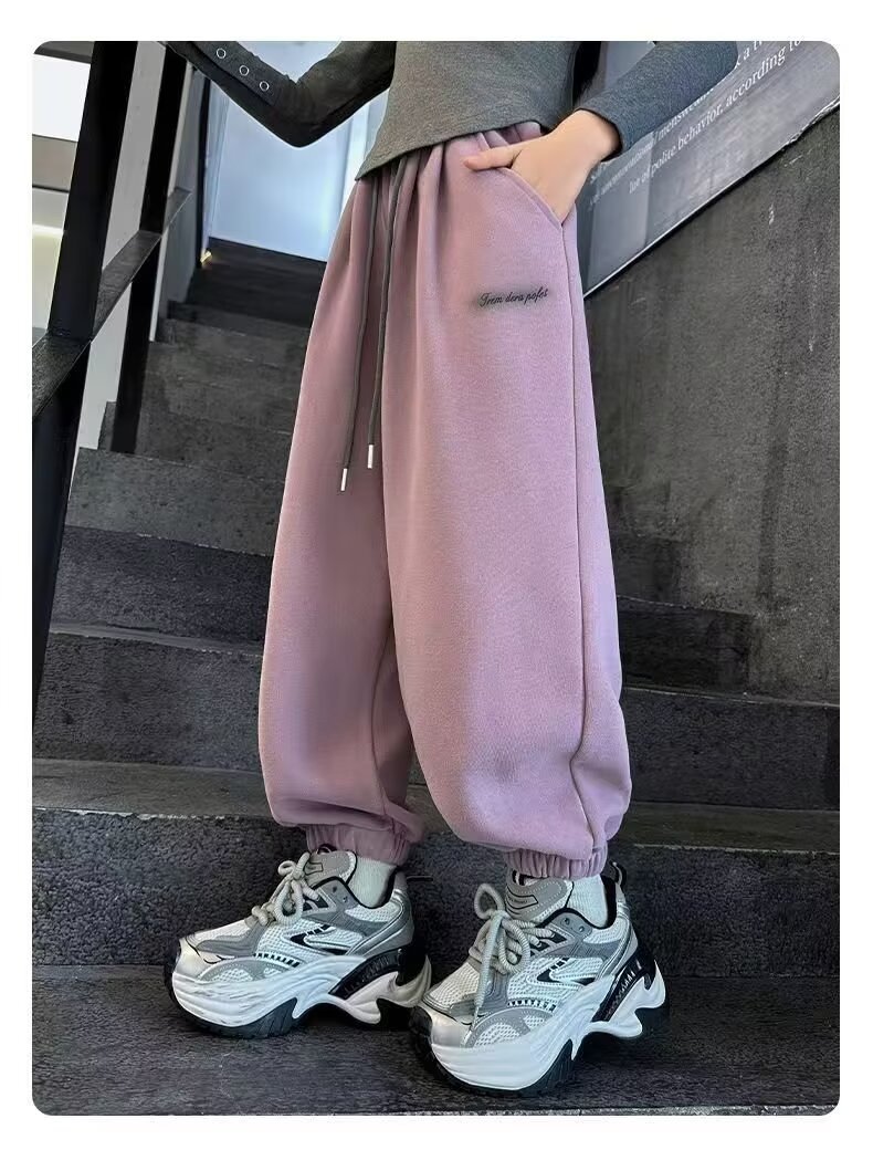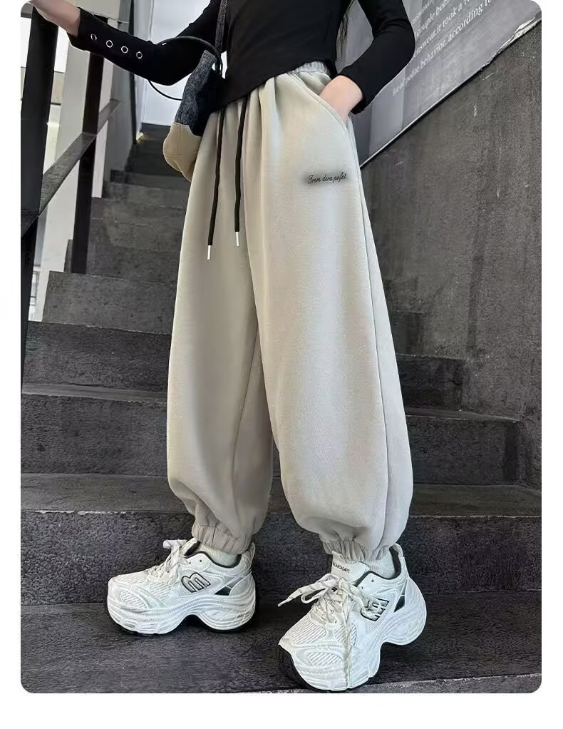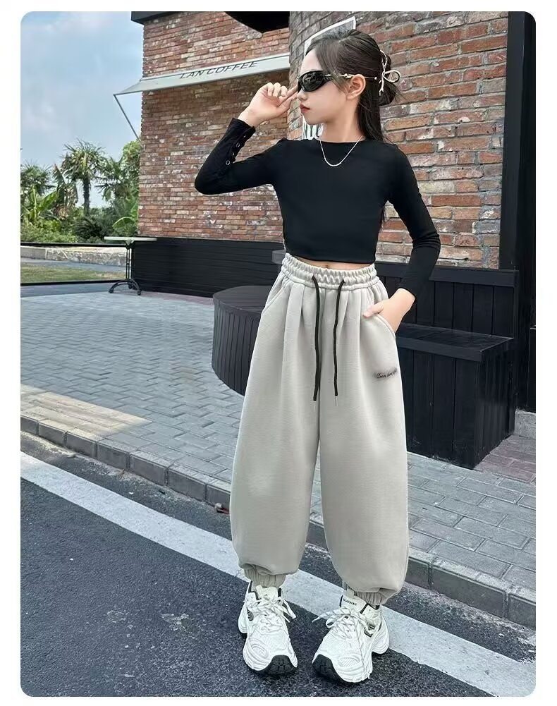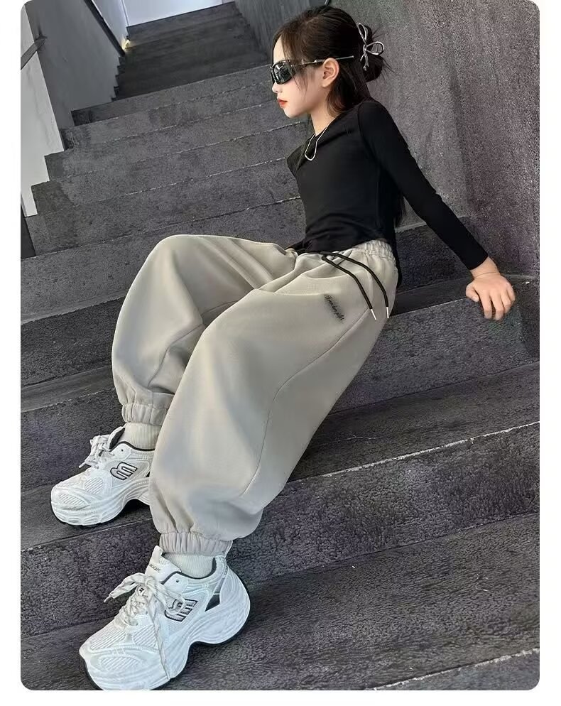 소녀 바지 봄과 가을 2024 새로운 어린이 가을 캐주얼 서양식 스포츠 바지 큰 어린이와 소녀를위한 느슨한 운동복