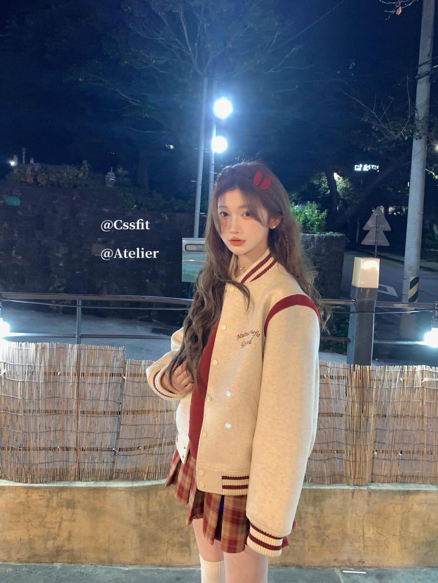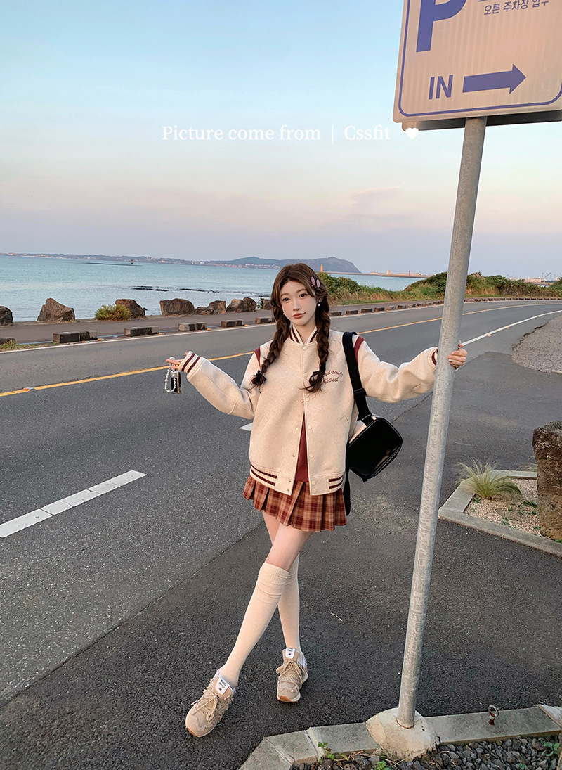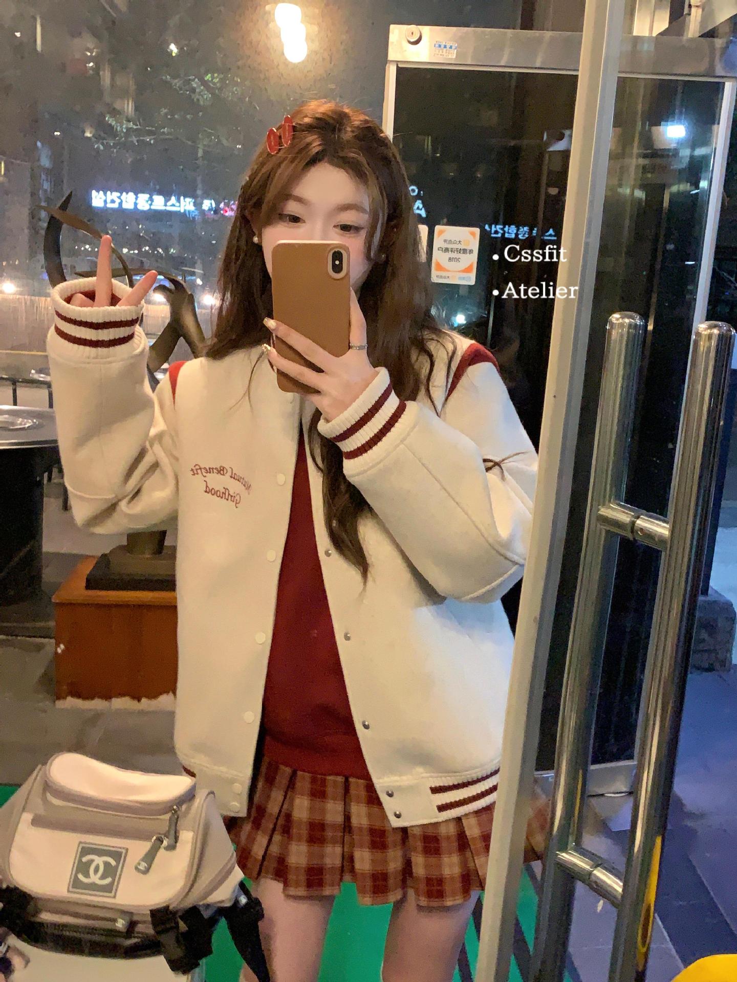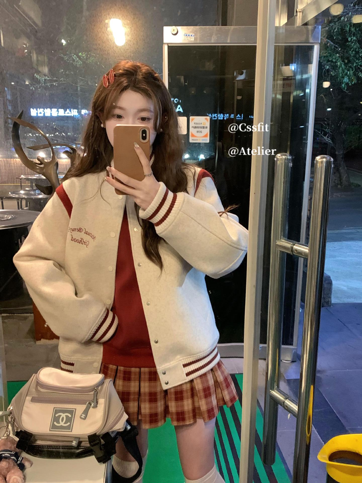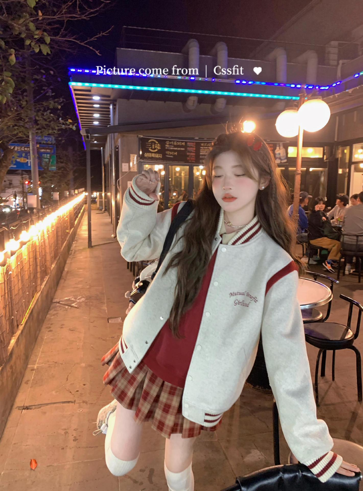 야구 세트 코트 수 놓은 봄과 가을 여자 재킷 양모 탑 새로운 느슨한 한국 스타일 2024 유행 편지 미국 스타일스토어 가기