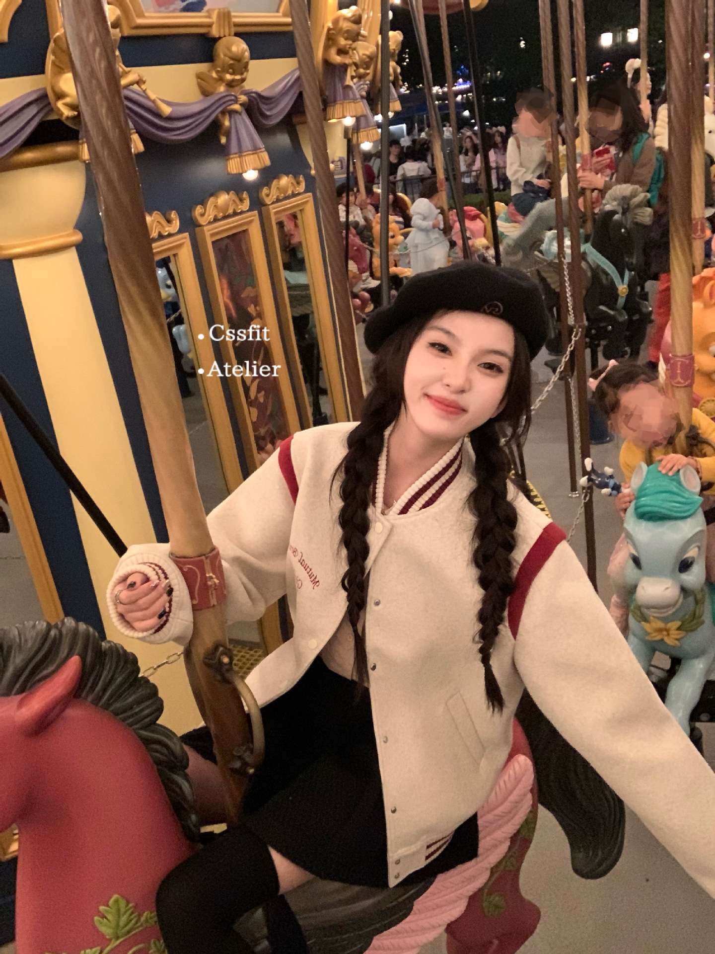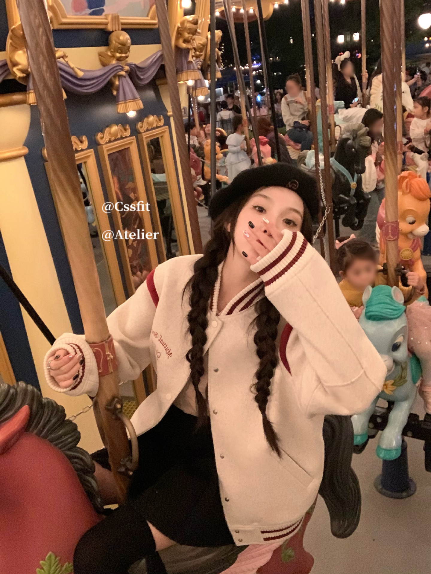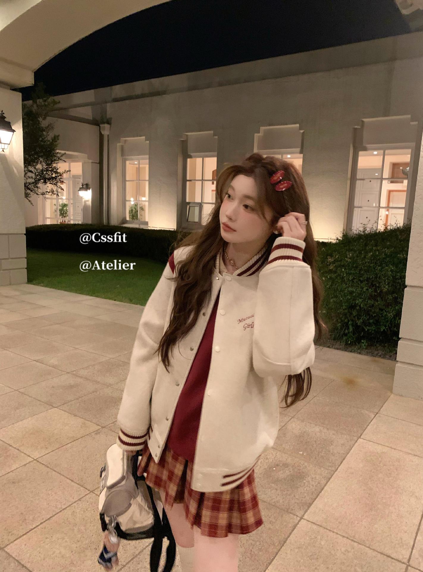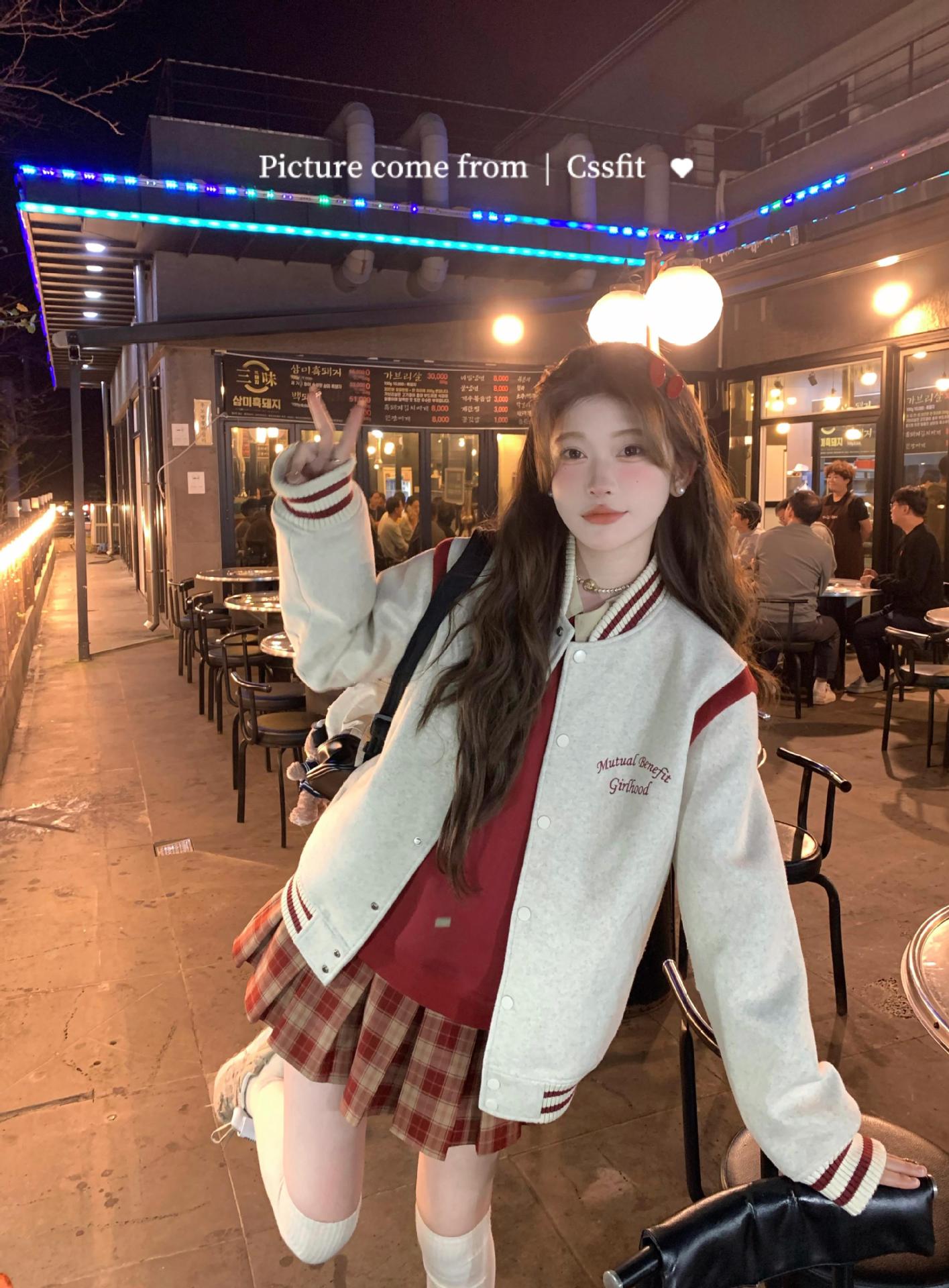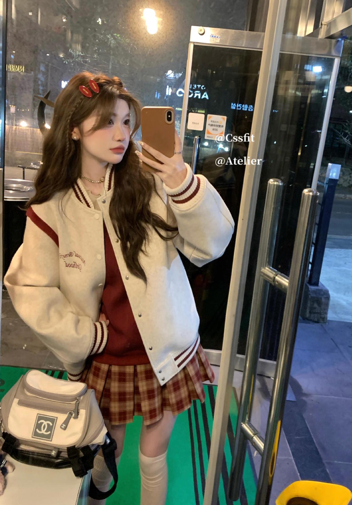 야구 세트 코트 수 놓은 봄과 가을 여자 재킷 양모 탑 새로운 느슨한 한국 스타일 2024 유행 편지 미국 스타일스토어 가기