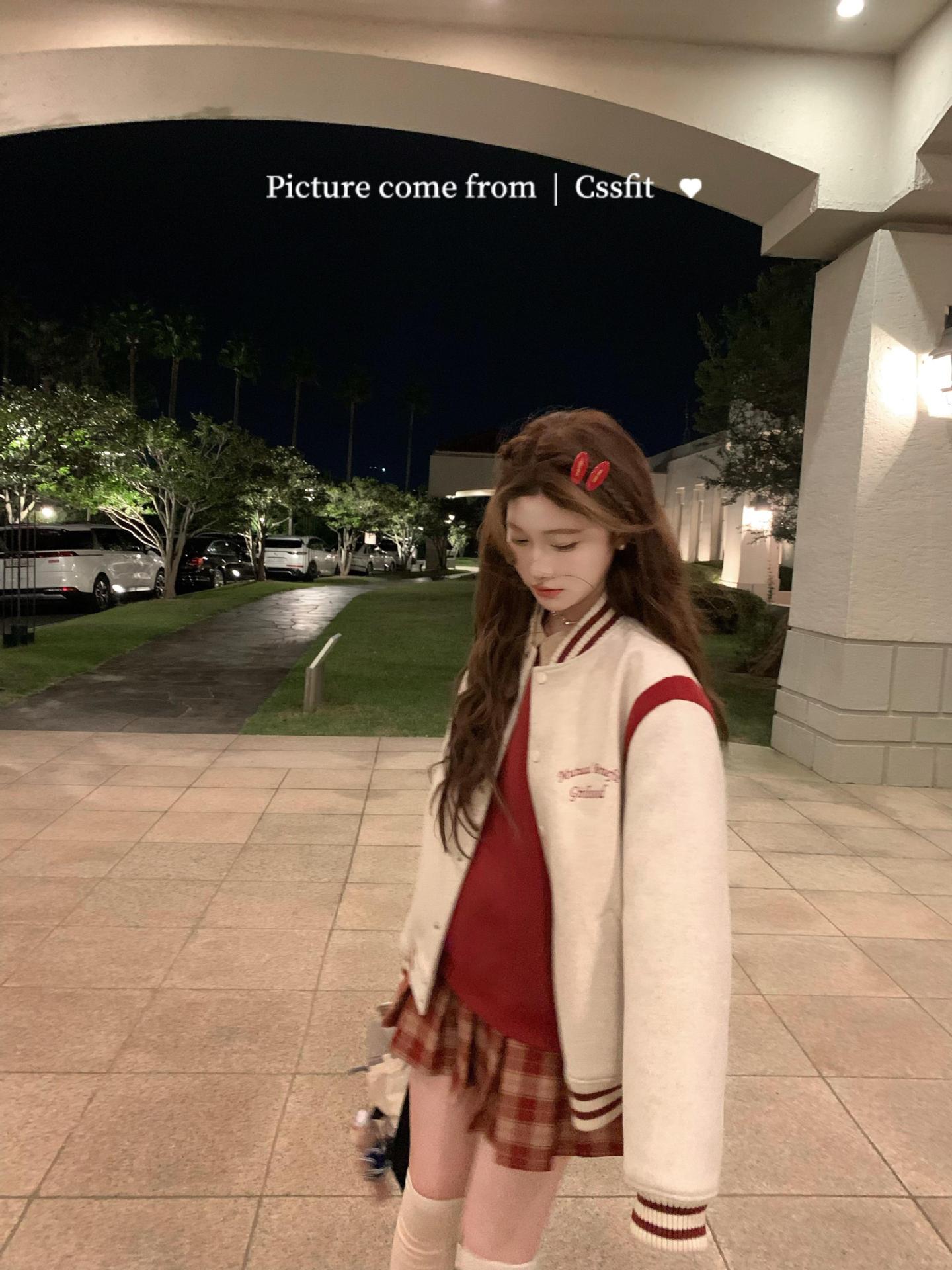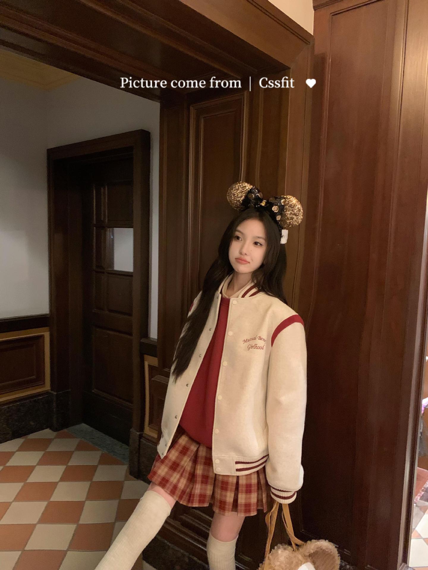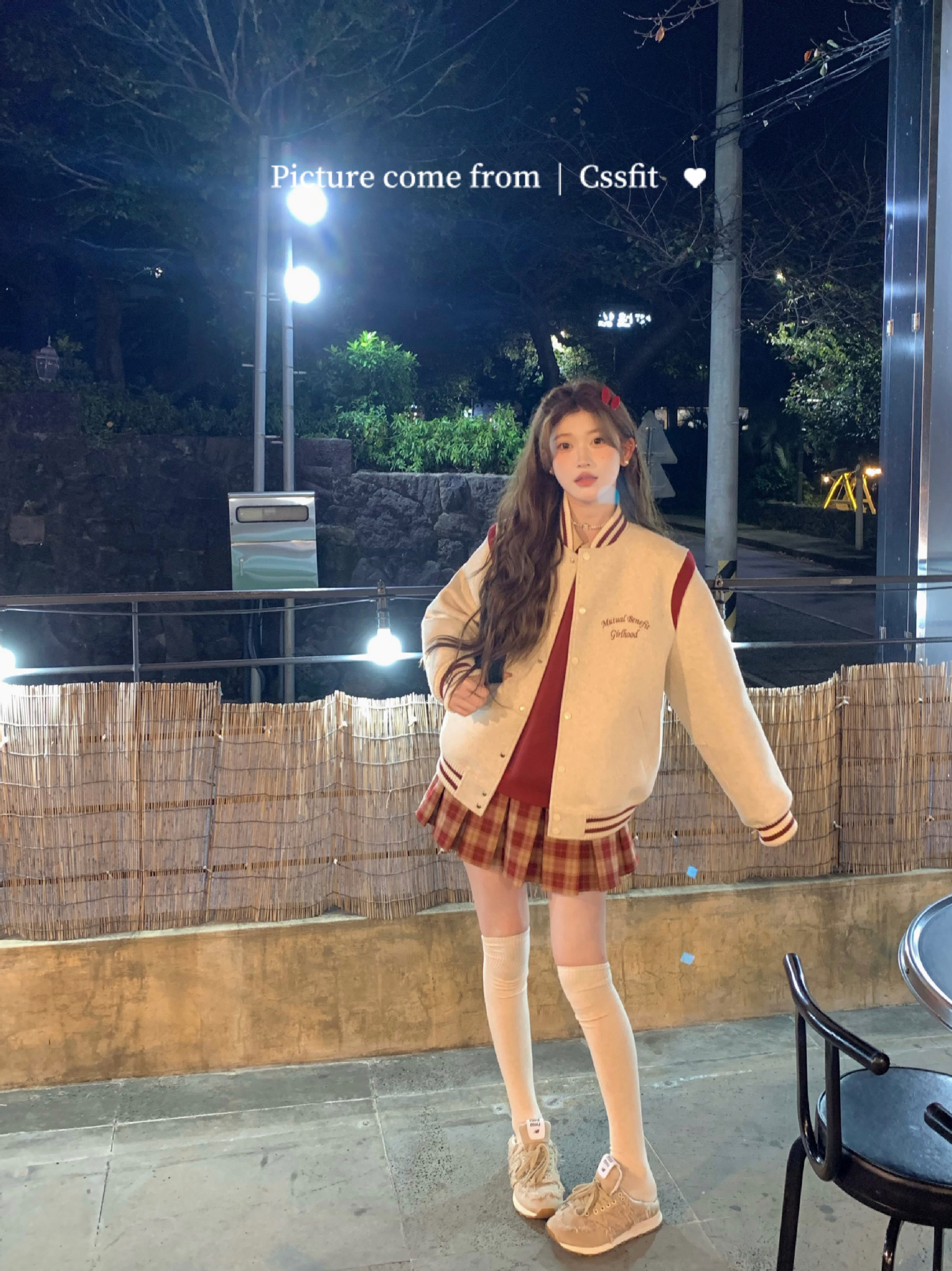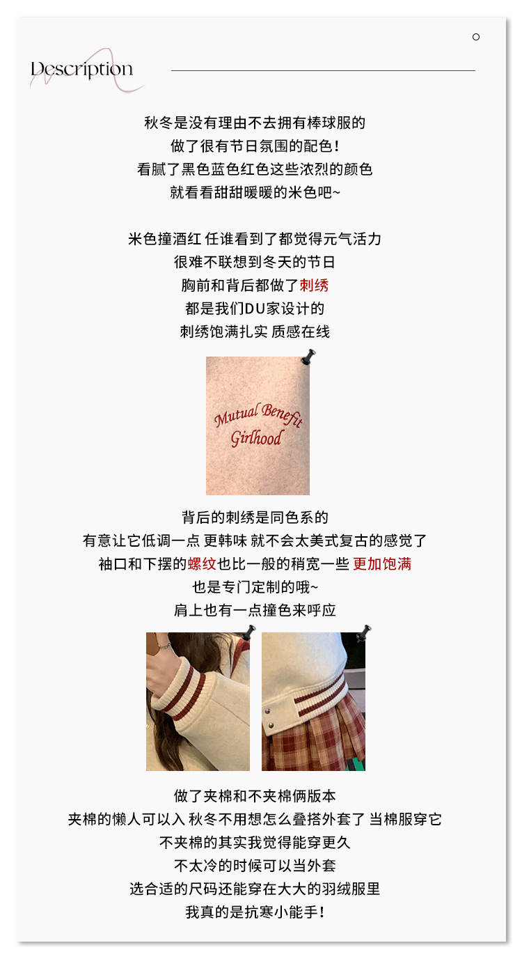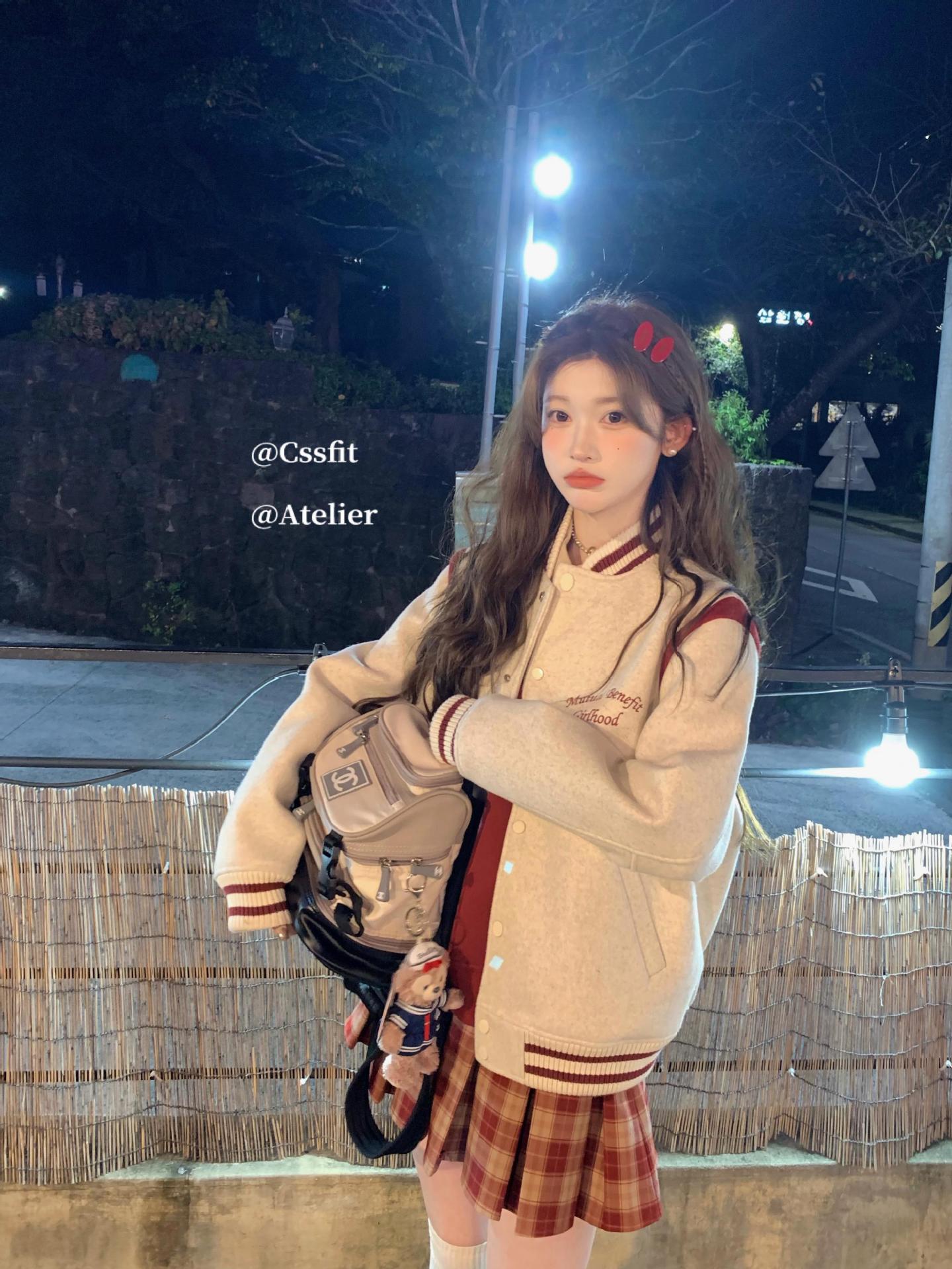 야구 세트 코트 수 놓은 봄과 가을 여자 재킷 양모 탑 새로운 느슨한 한국 스타일 2024 유행 편지 미국 스타일스토어 가기