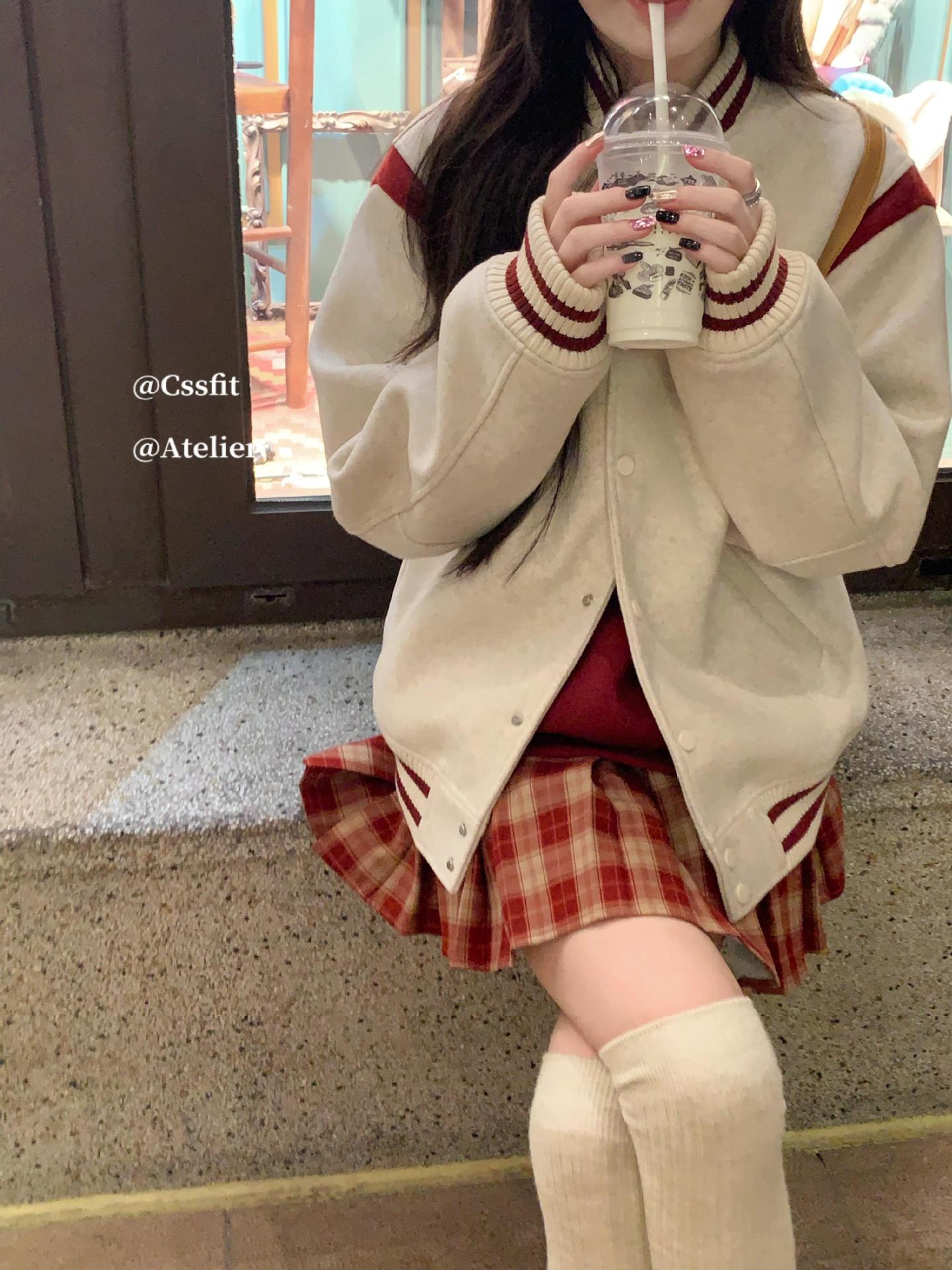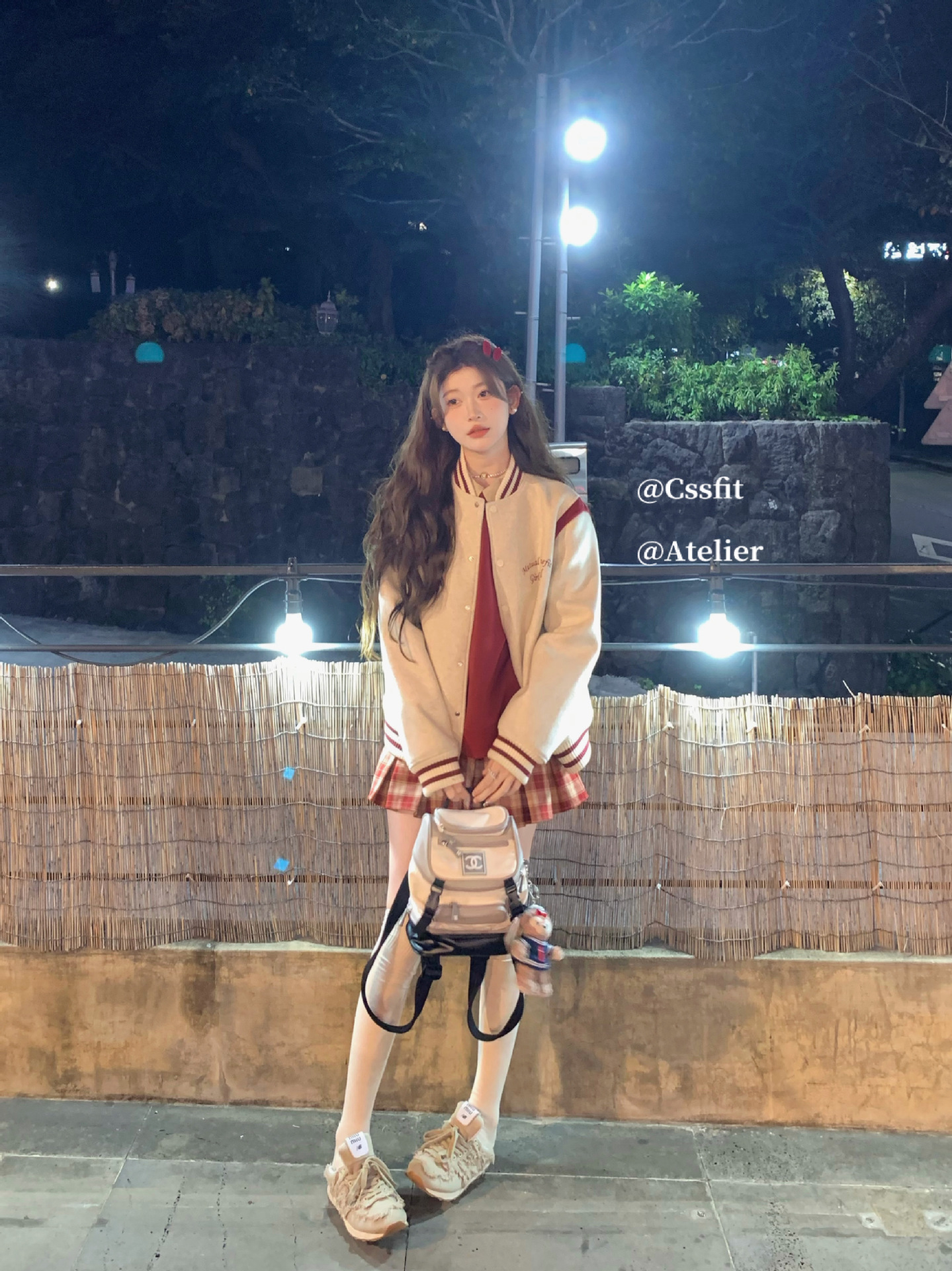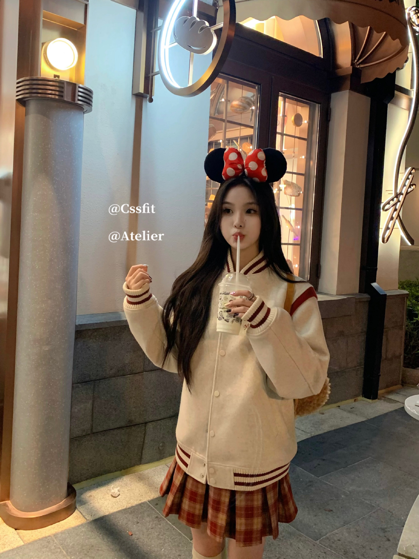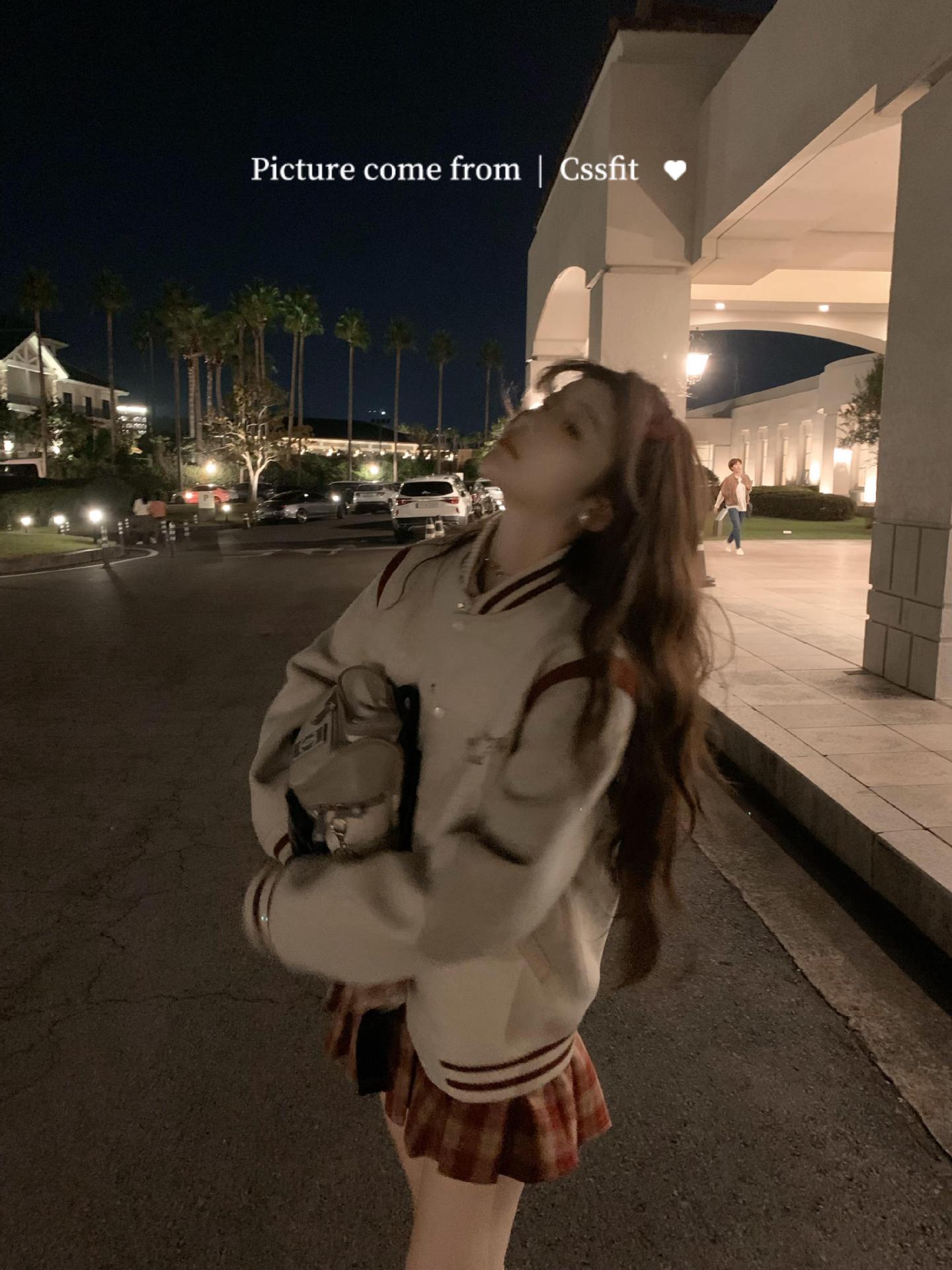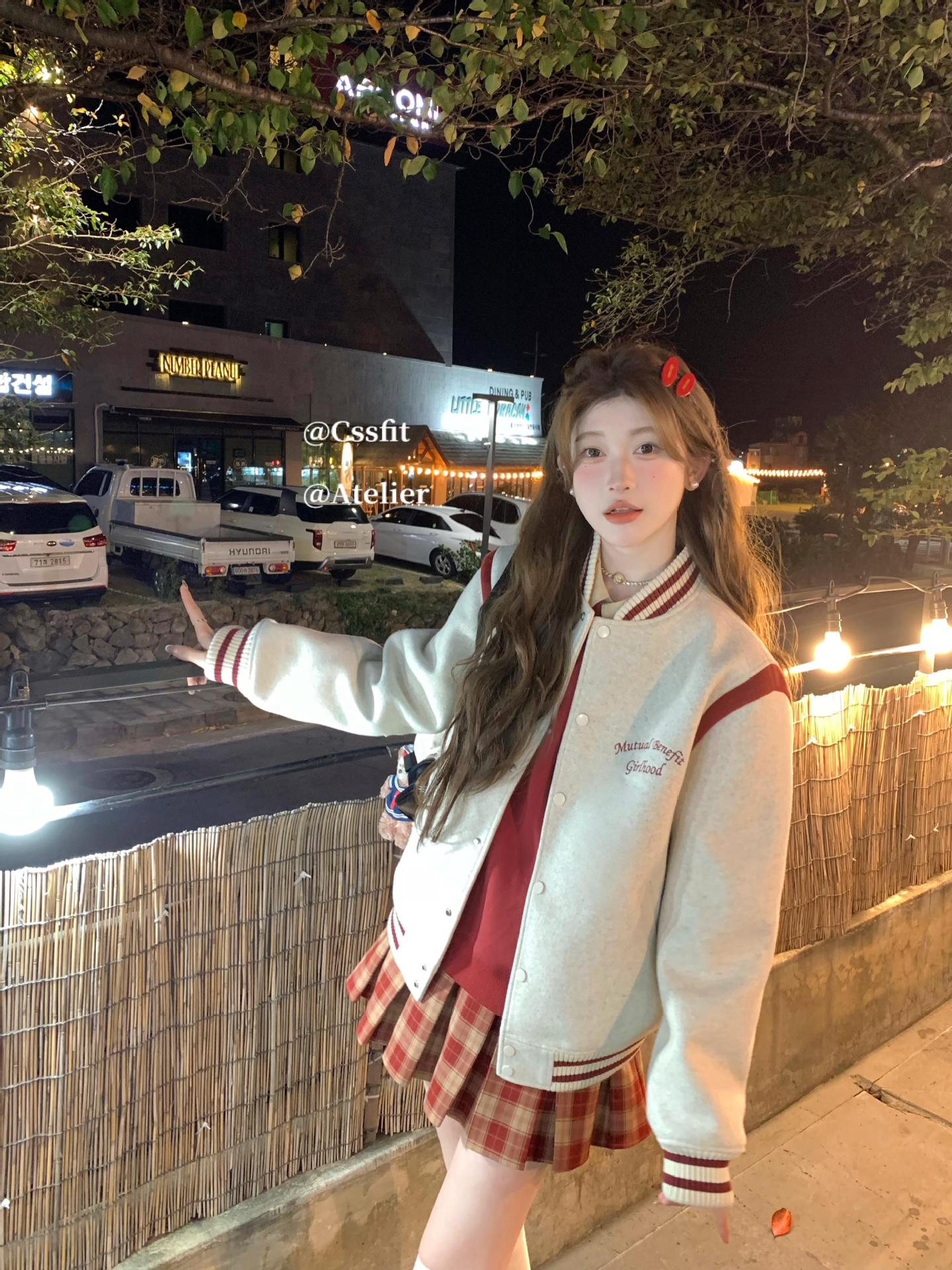 야구 세트 코트 수 놓은 봄과 가을 여자 재킷 양모 탑 새로운 느슨한 한국 스타일 2024 유행 편지 미국 스타일스토어 가기