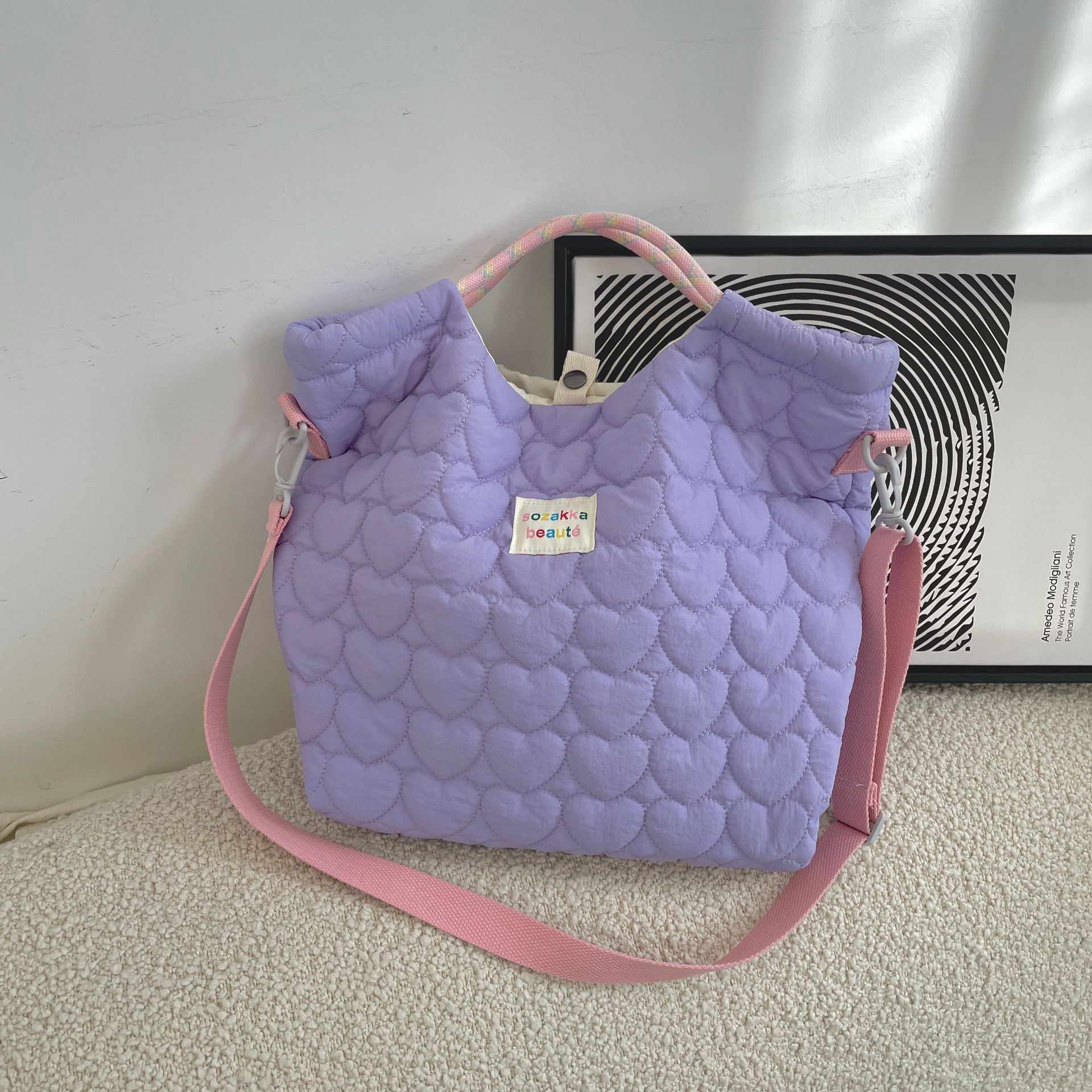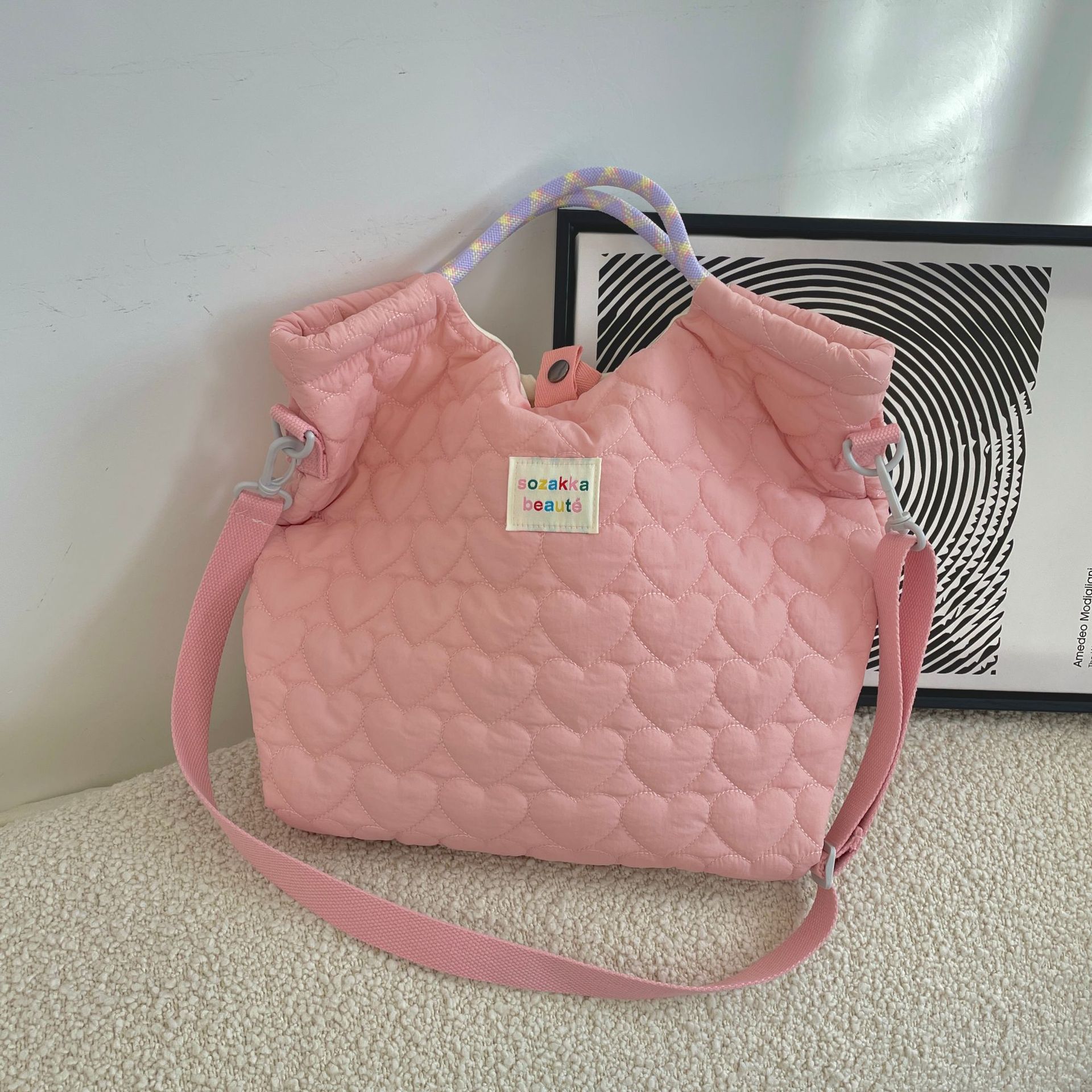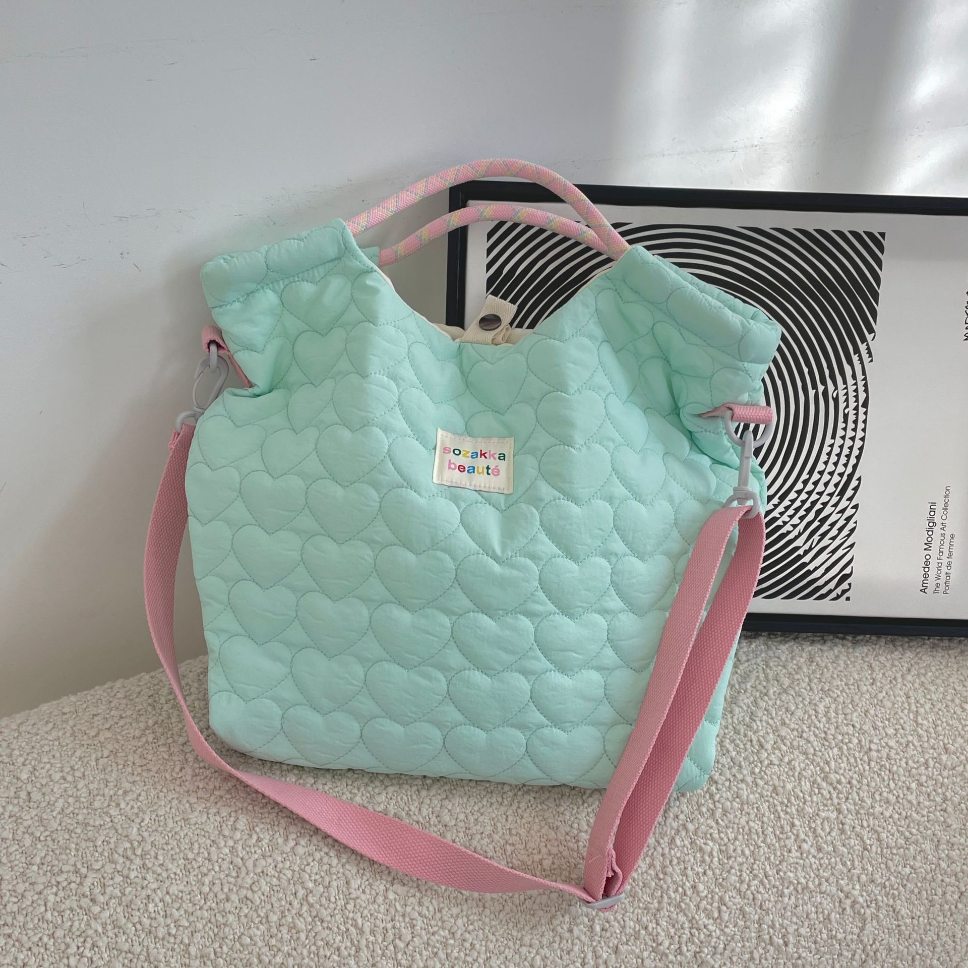 41172 귀여운 크림 스타일 핸드 헬드 캔버스 가방 퀼트 사랑 대용량 학생 토트 백 캐주얼 크로스 바디 백