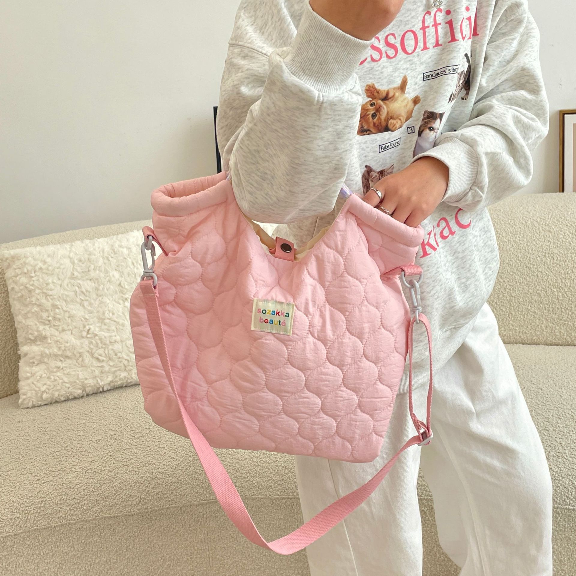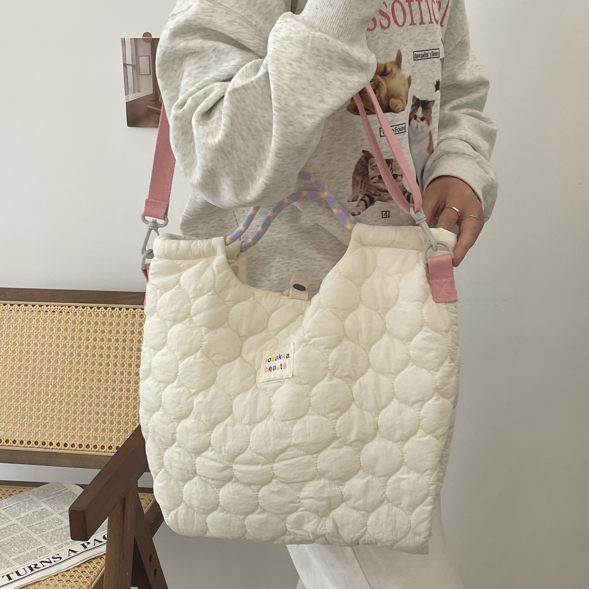 41172 귀여운 크림 스타일 핸드 헬드 캔버스 가방 퀼트 사랑 대용량 학생 토트 백 캐주얼 크로스 바디 백스토어 가기