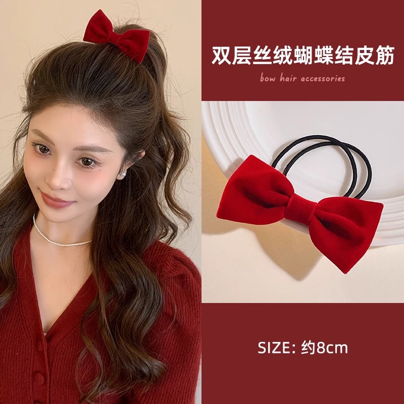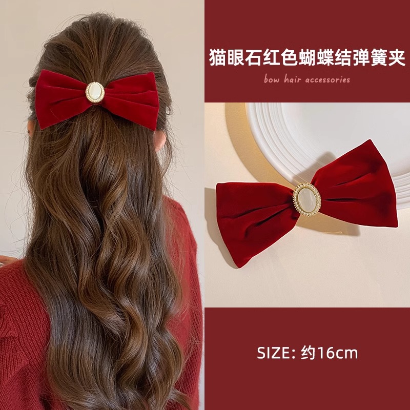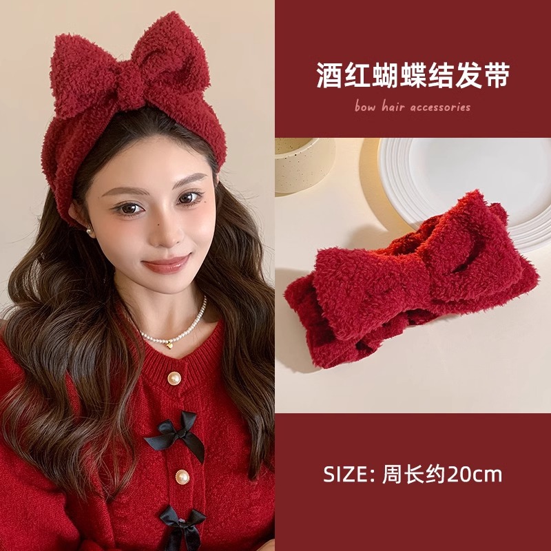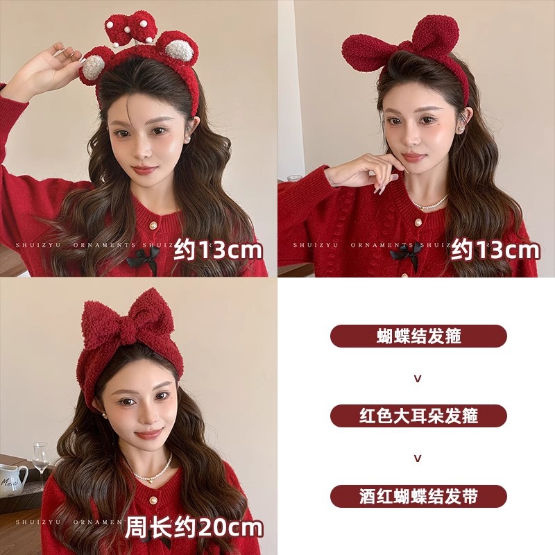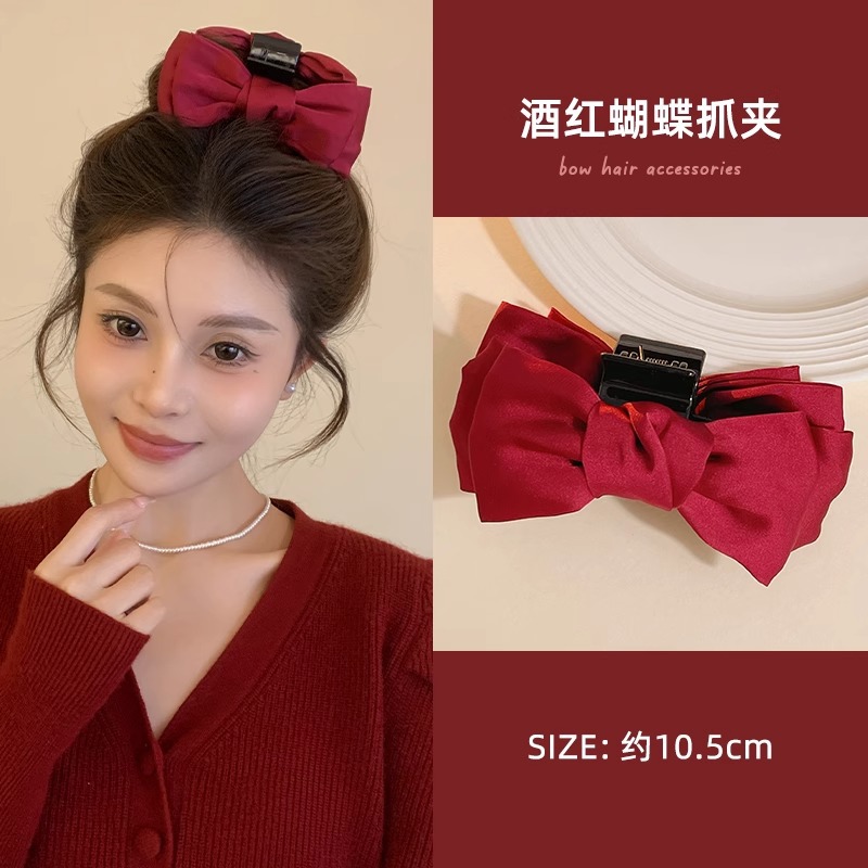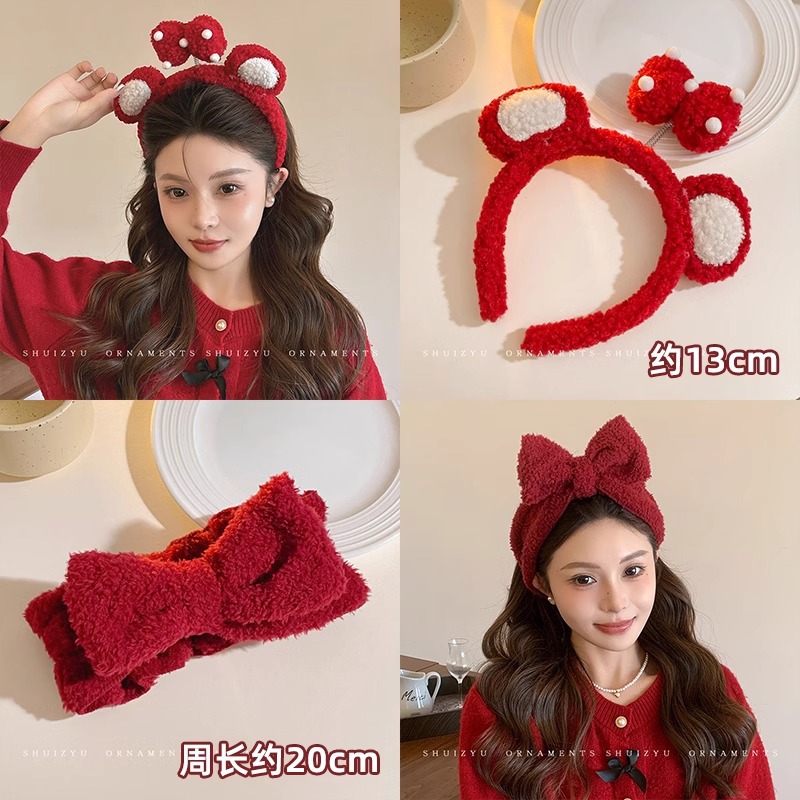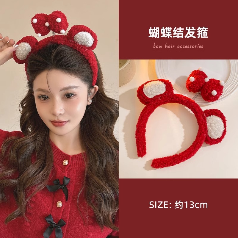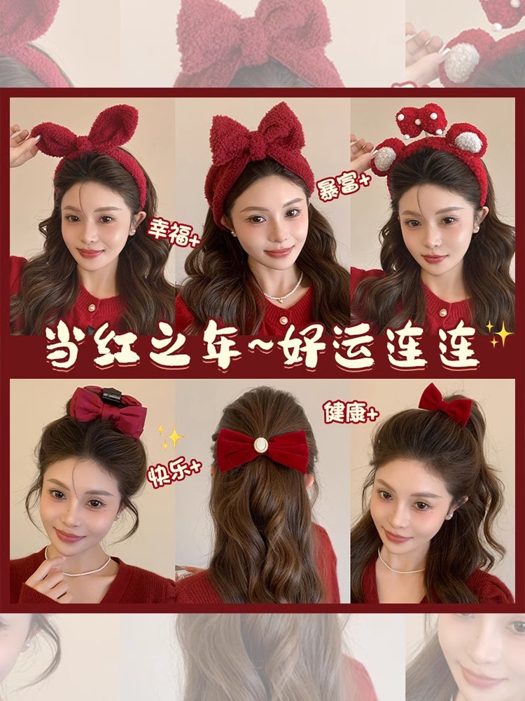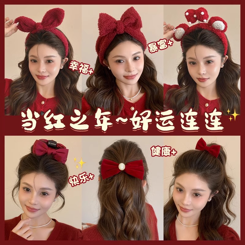 새해 빨간 활 헤어핀 헤어 밴드 여성의 2024 신년 잡아 클립 헤어 액세서리 가을과 겨울 클립 헤드폰 헤어핀스토어 가기
