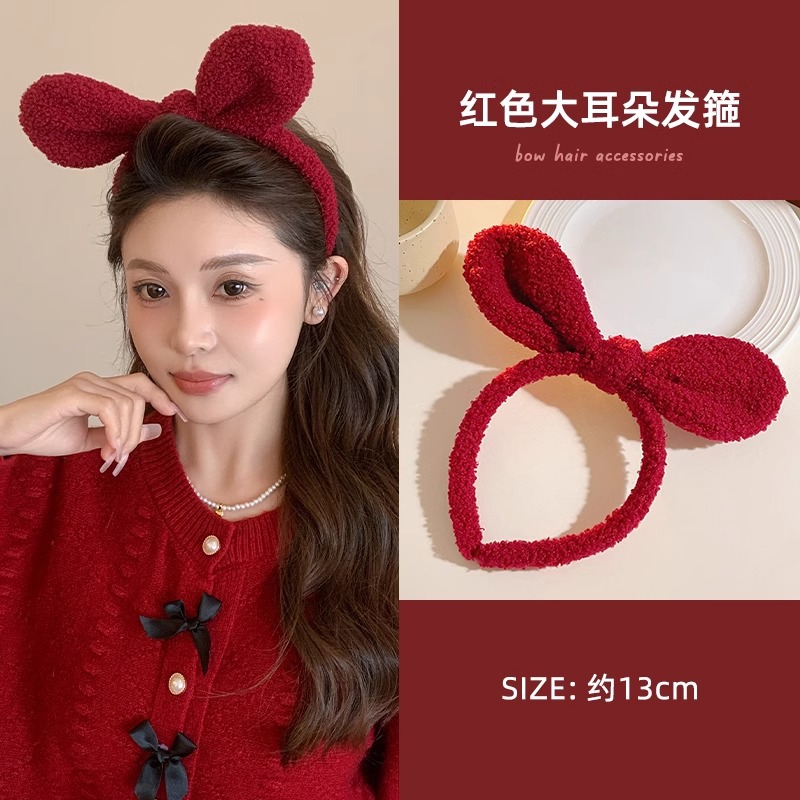 새해 빨간 활 헤어핀 헤어 밴드 여성의 2024 신년 잡아 클립 헤어 액세서리 가을과 겨울 클립 헤드폰 헤어핀