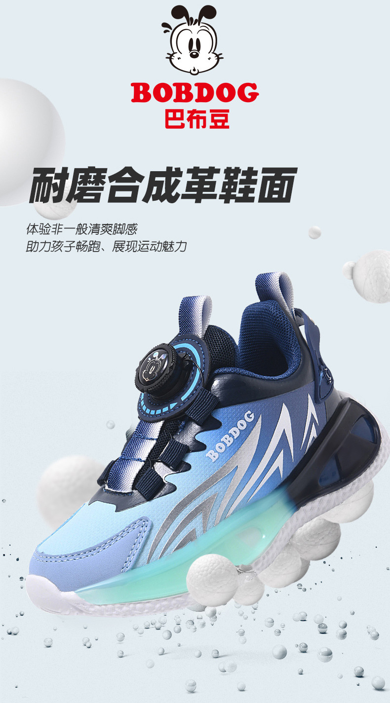 바부두 남아 신발 봄 가을 아동 가죽 방수 운동화 중대형 어린이 6-12세 회전 버클 농구화