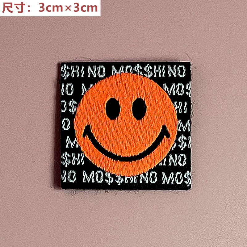스팟 상품 스마일 로고 제조업체 직송 의류 직조 라벨 고급 고밀도 직조 라벨 클래식 스마일 스타일 라벨스토어 가기