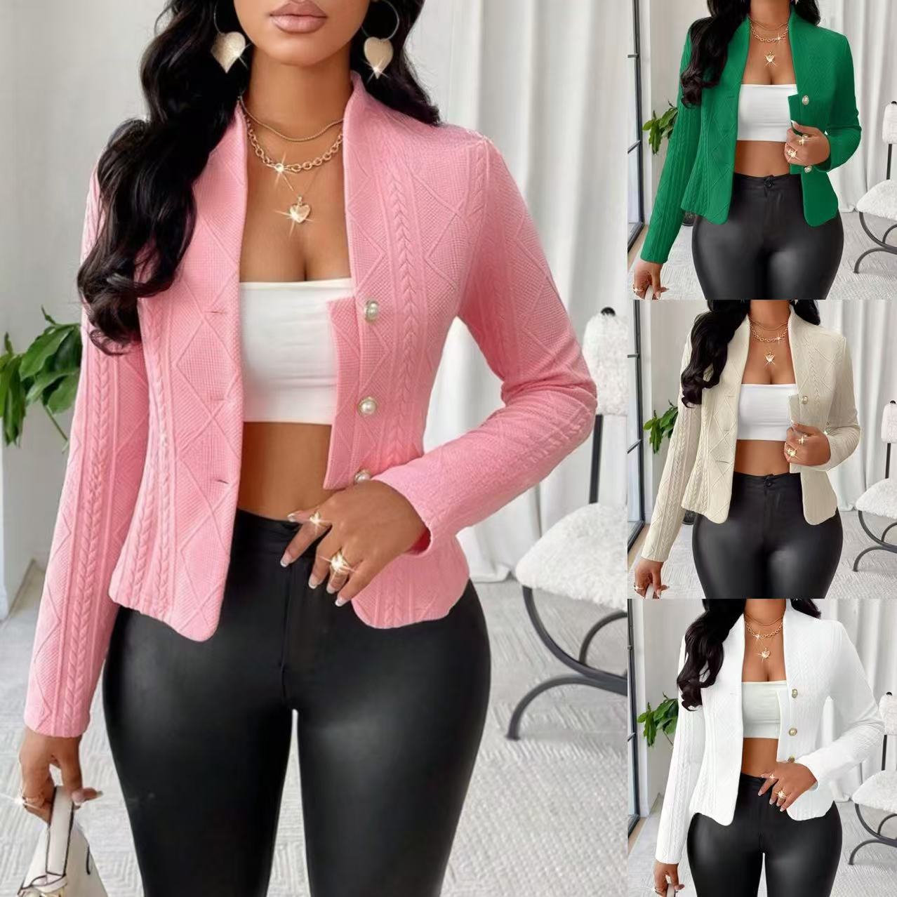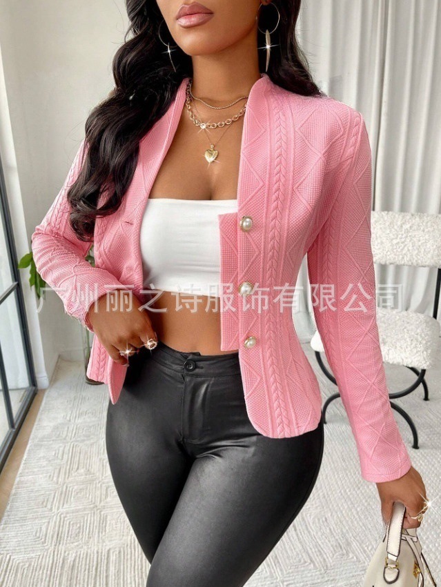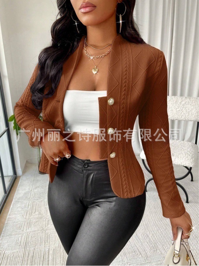 아마존 크로스보더 2025 유럽 및 미국 가을 겨울 라이트 럭셔리 여성복 짧은 버튼 긴팔 슬림핏 재킷 여성 코트스토어 가기