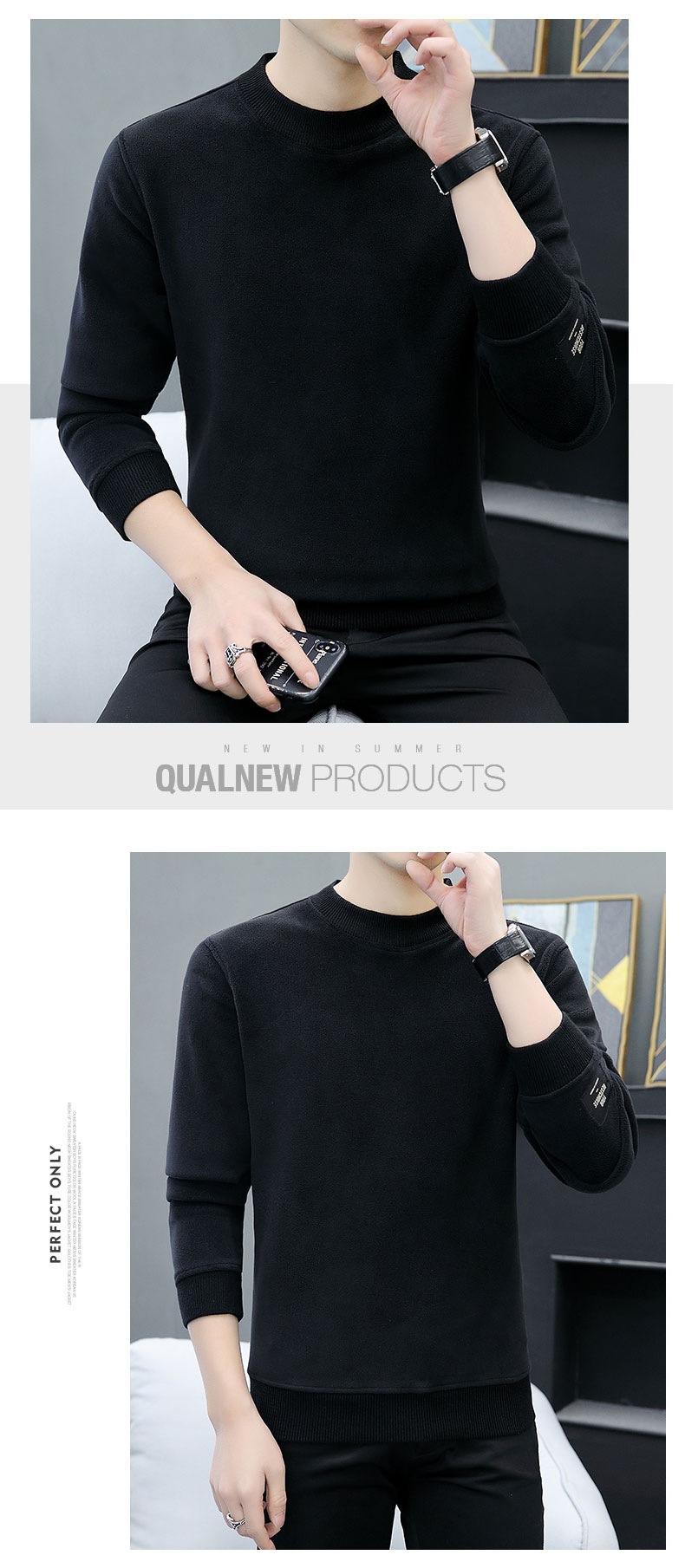 가을과 겨울 새로운 긴 소매 라운드 넥 캐주얼 스웨터 남성용 패셔너블 프린트 슬림 핏 스웨터 니트 베이스 셔츠