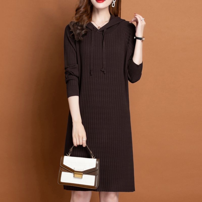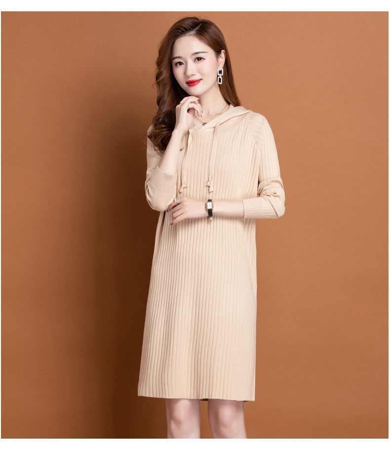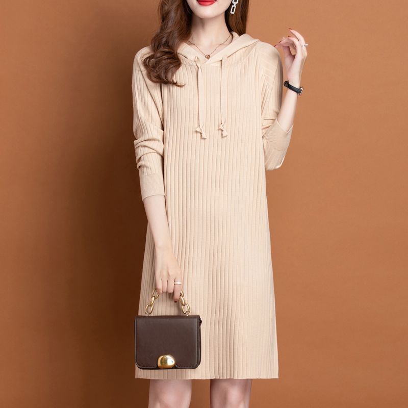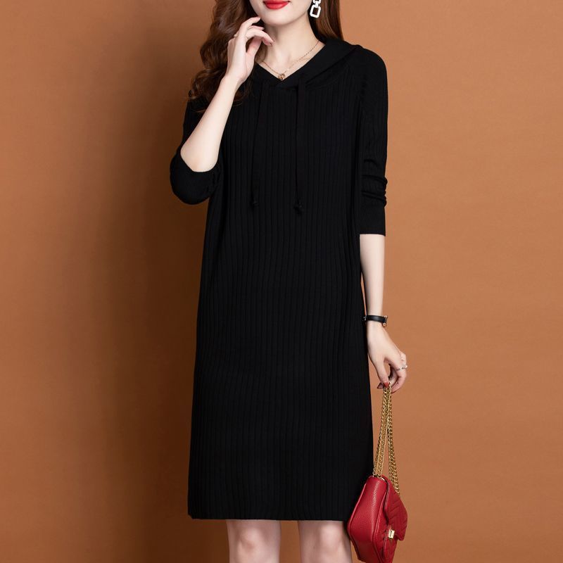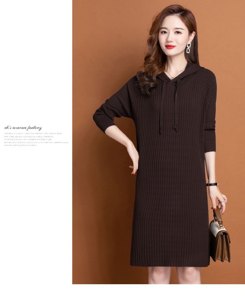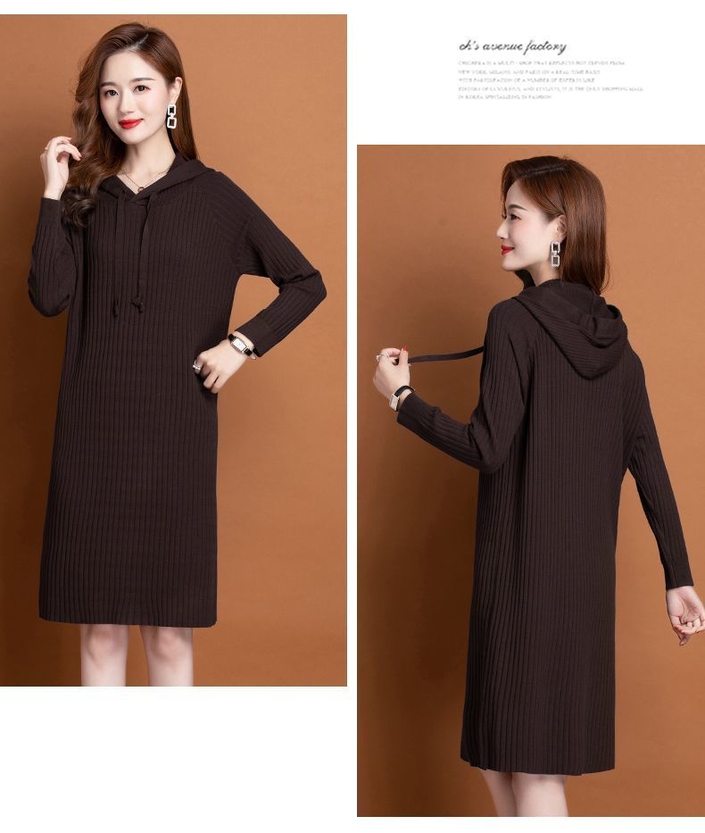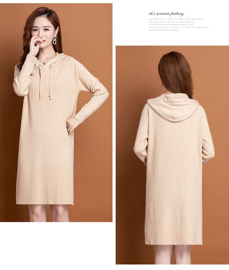 중장 후드 스웨터 원피스 여성용 느슨한 외복 2024 가을과 겨울 새로운 한국 스타일 유행 캐주얼 베이스 스웨터