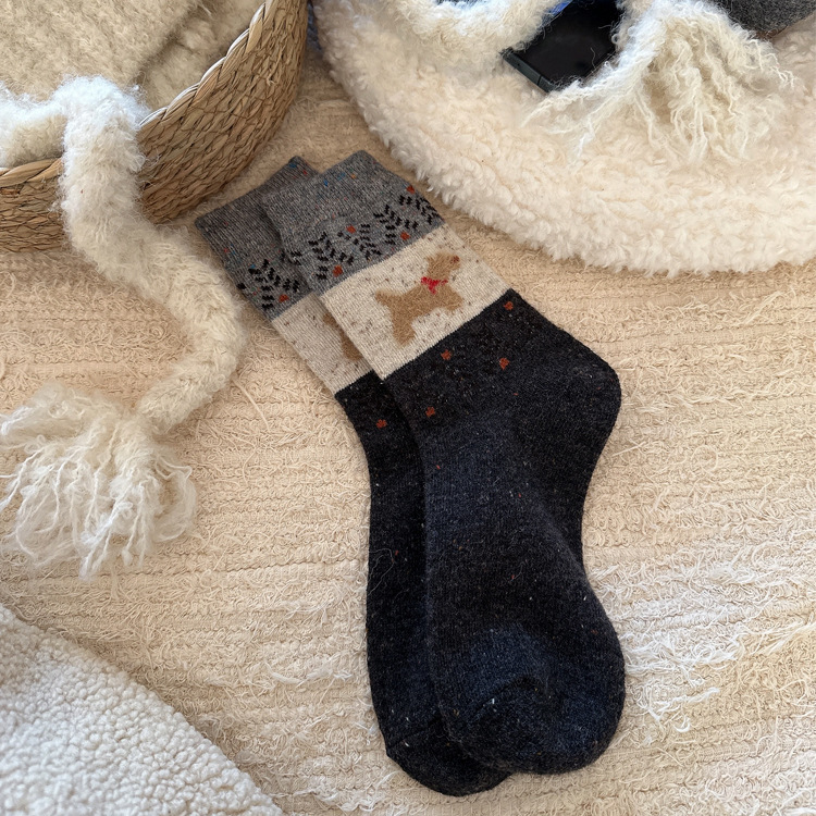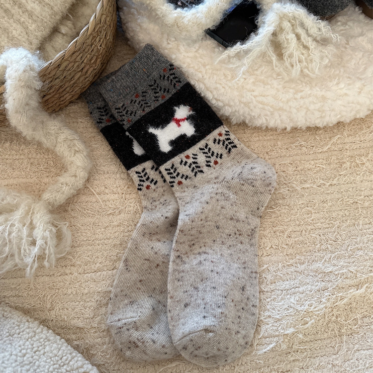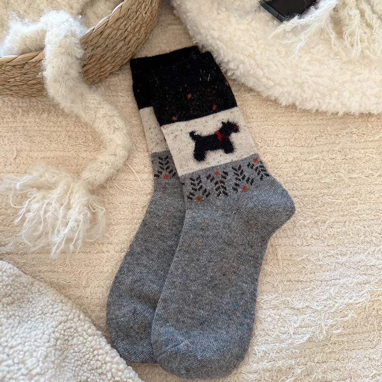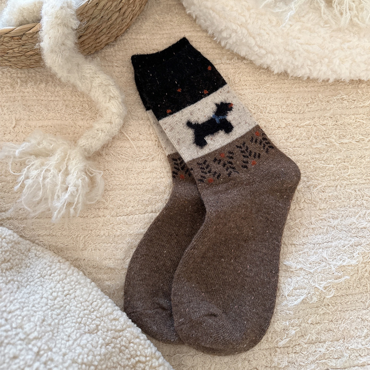 여성용 두꺼운 따뜻한 양말 페어 아일랜드 빈티지 컬러 블록 개 일본 양모 양말 미드 튜브 양말 여성용 양말스토어 가기