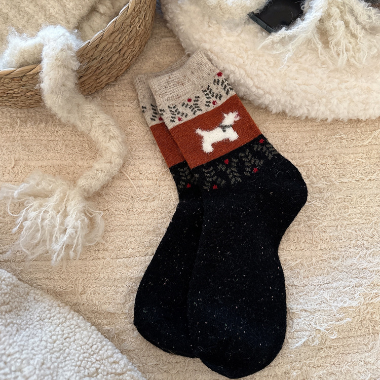 여성용 두꺼운 따뜻한 양말 페어 아일랜드 빈티지 컬러 블록 개 일본 양모 양말 미드 튜브 양말 여성용 양말