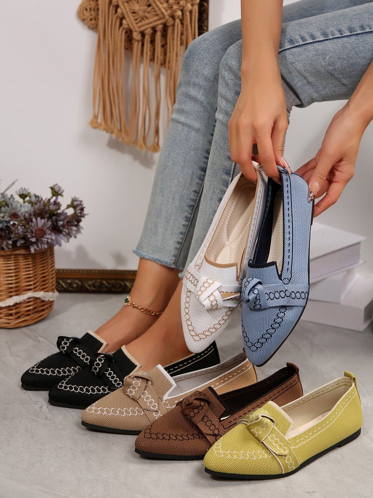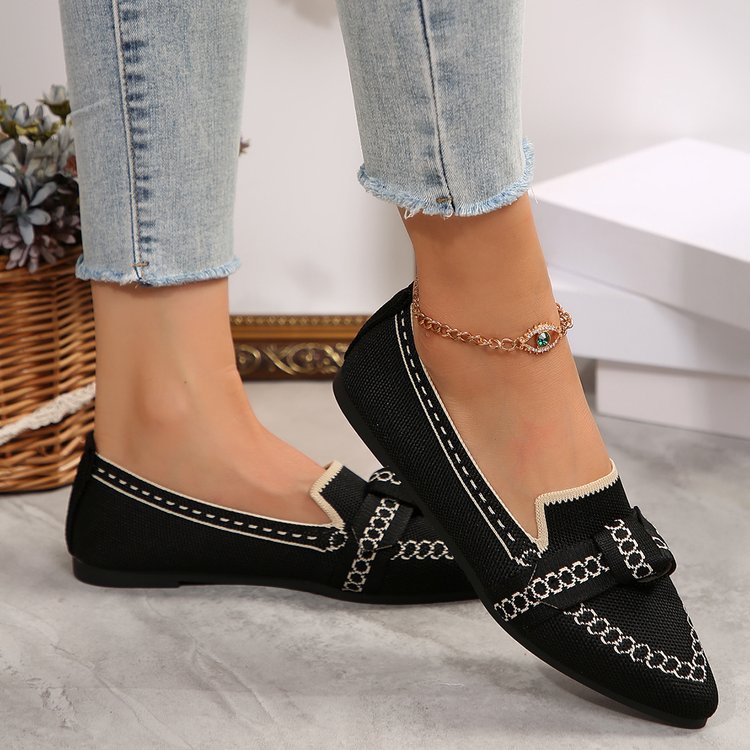 의상 플러스 사이즈 플랫 콩 신발 여성 2023 패션 플라잉 짠 스텝 온 활 캐주얼 통기성 통근 신발스토어 가기