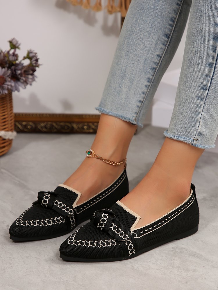 의상 플러스 사이즈 플랫 콩 신발 여성 2023 패션 플라잉 짠 스텝 온 활 캐주얼 통기성 통근 신발