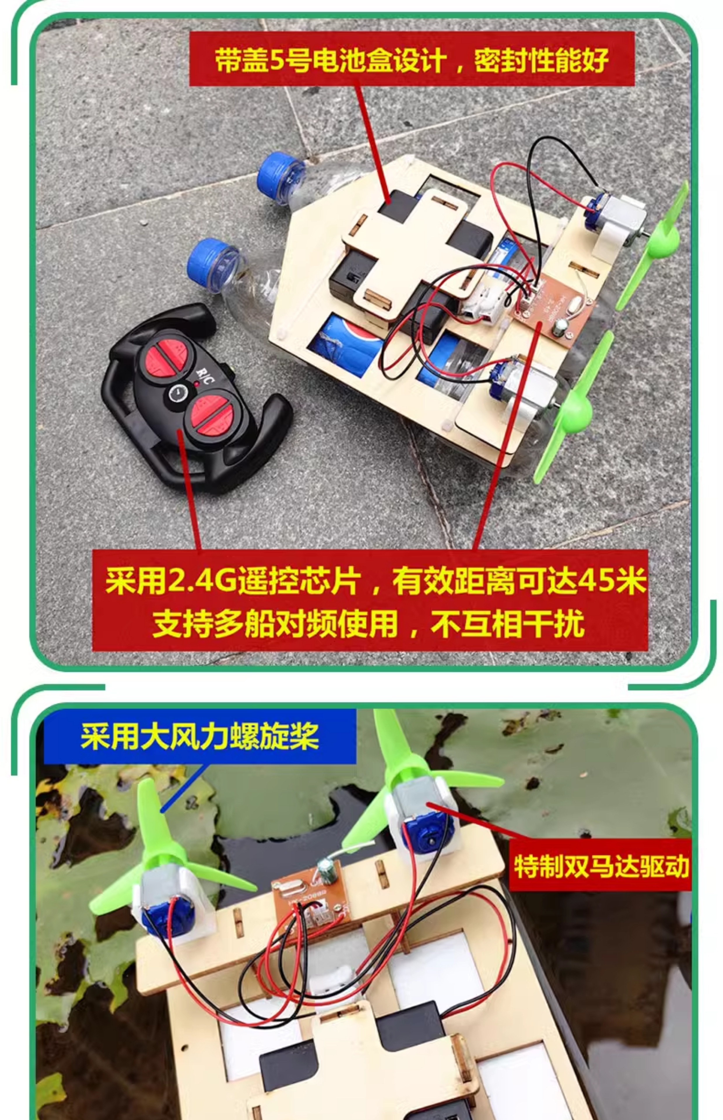 폐기물을 보물 키트로 바꾸는 원격 제어 선박 작은 발명 기술을 만드는 선박 재료 과학 실험 수동 초등학생