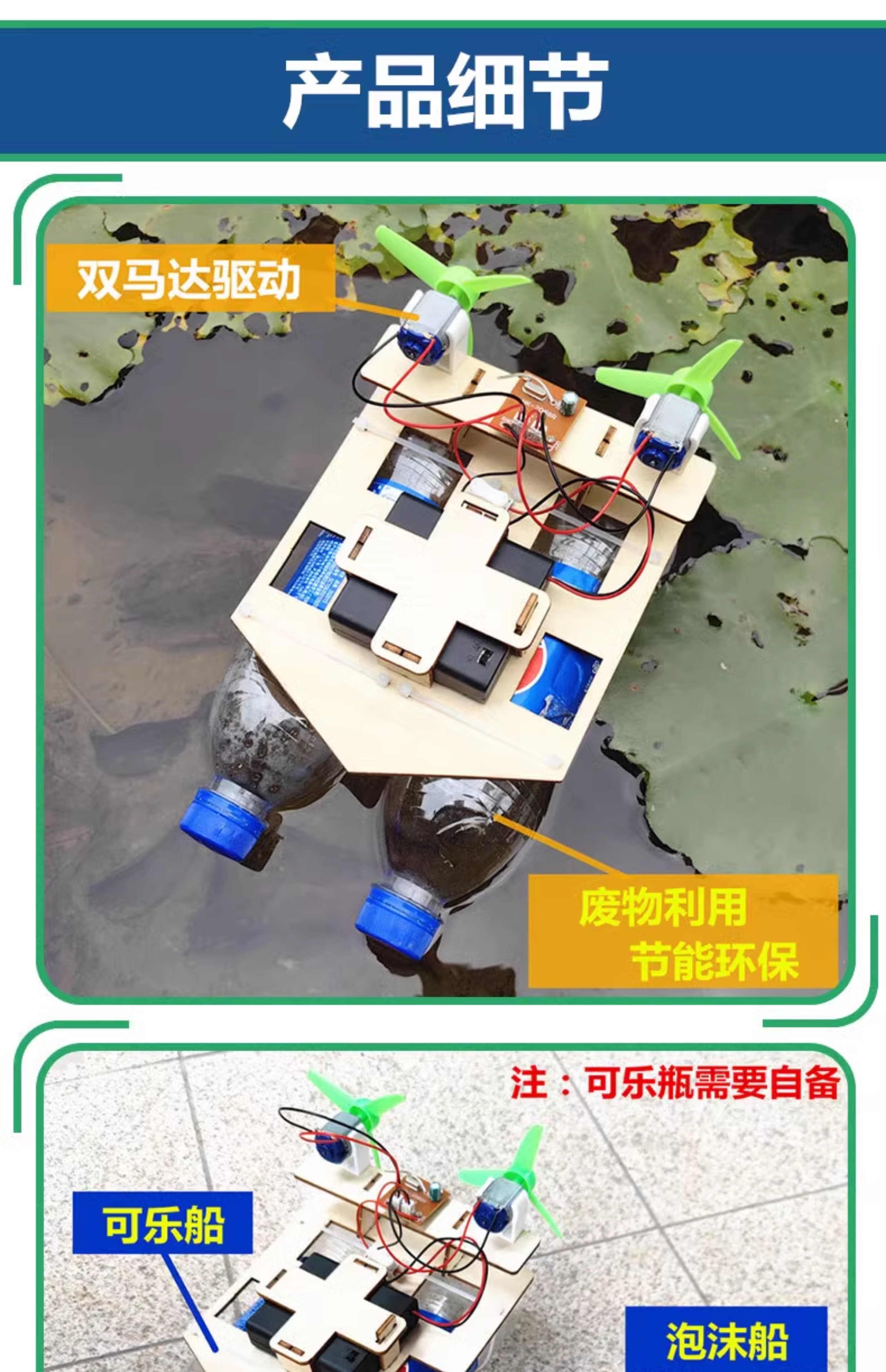 폐기물을 보물 키트로 바꾸는 원격 제어 선박 작은 발명 기술을 만드는 선박 재료 과학 실험 수동 초등학생스토어 가기