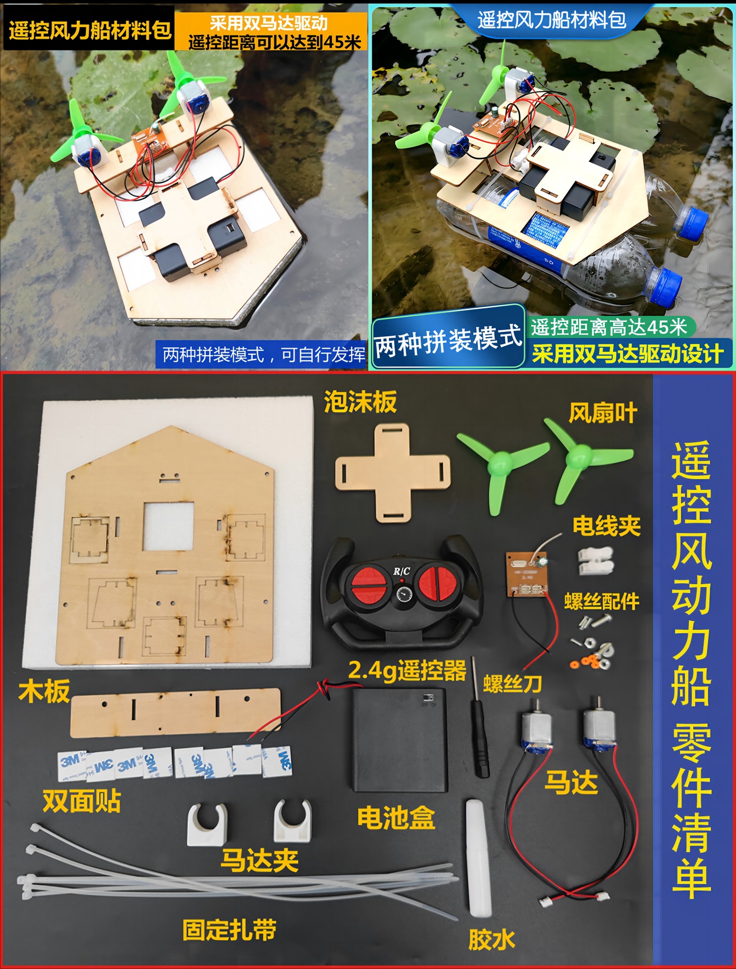 • 원격 제어 풍력 보트 재료 패키지⭐앞뒤로 회전 가능(⭐2.4G 4방향)