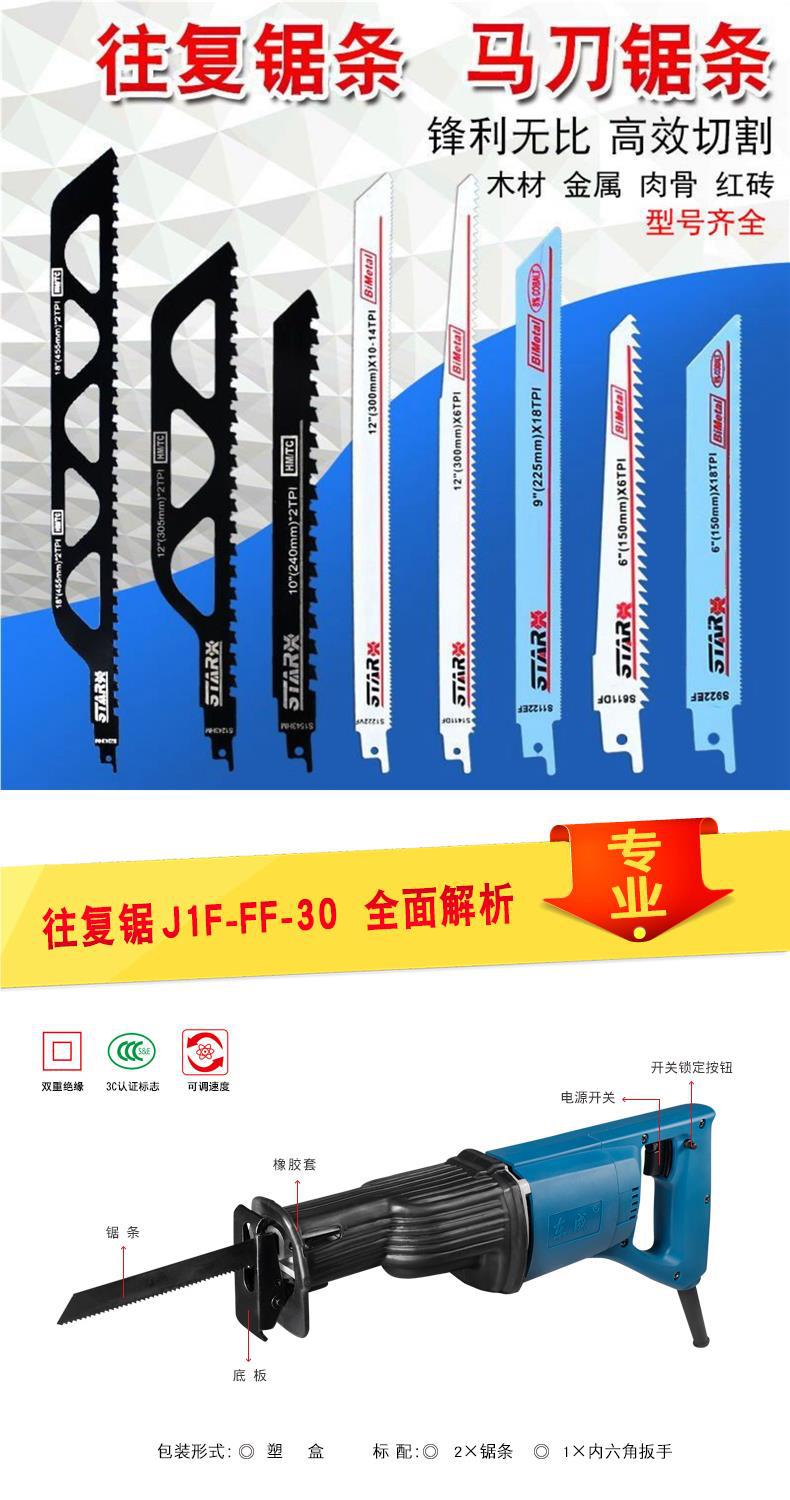 Dongcheng 왕복 톱 J1F-FF-30 플러그인 전기 절단 톱 220V 세이버 본 스틸 파이프 플라스틱 케이블 톱