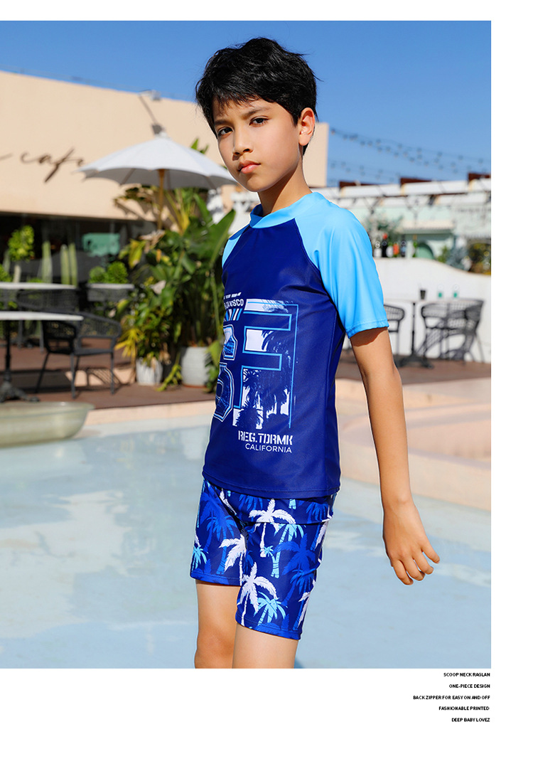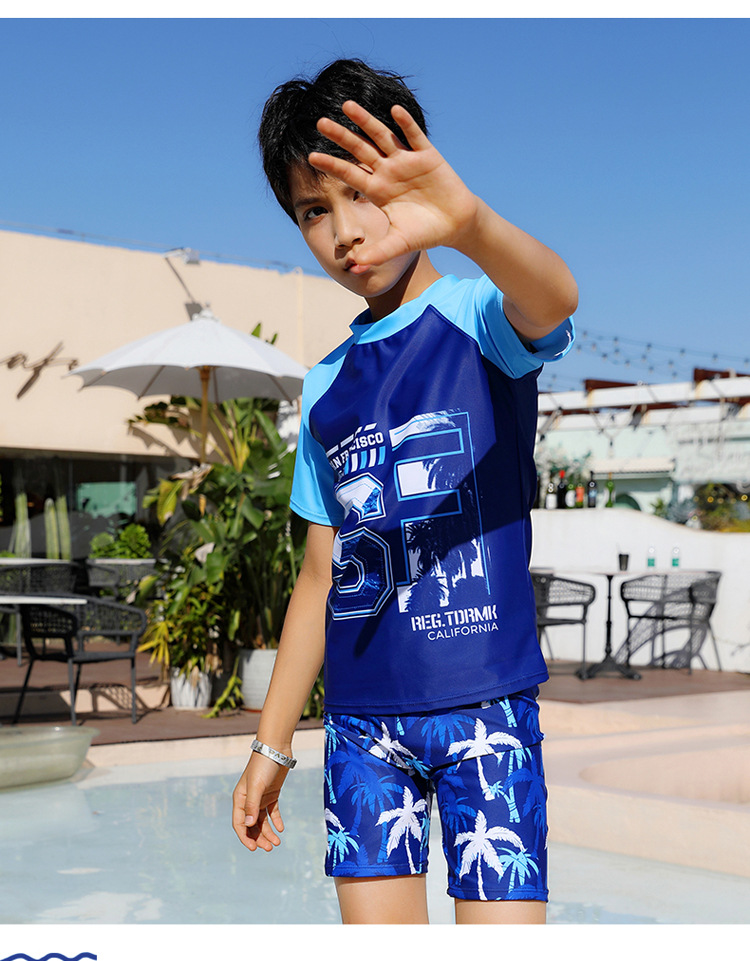 여름 새로운 어린이 잘 생긴 레저 스포츠 편지 코코넛 나무 중대형 어린이 학생 분할 투피스 수영복스토어 가기