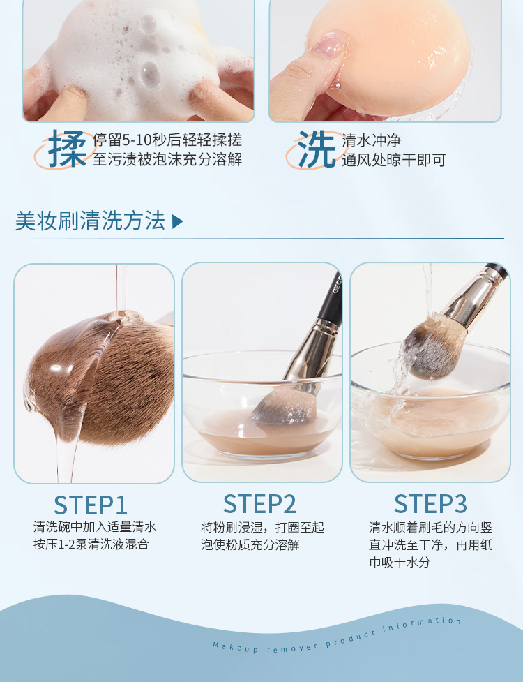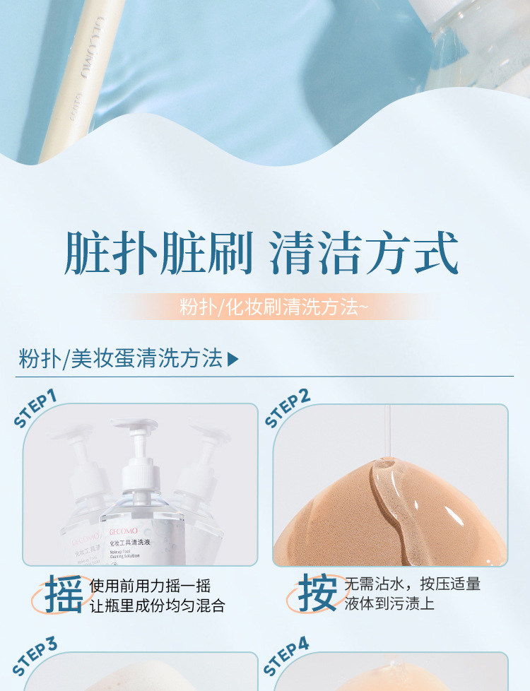 GECOMO 메이크업 도구 청소 솔루션 온화하고 자극적이지 않은 메이크업 브러시 파우더 퍼프 클리너 메이크업 아티스트스토어 가기
