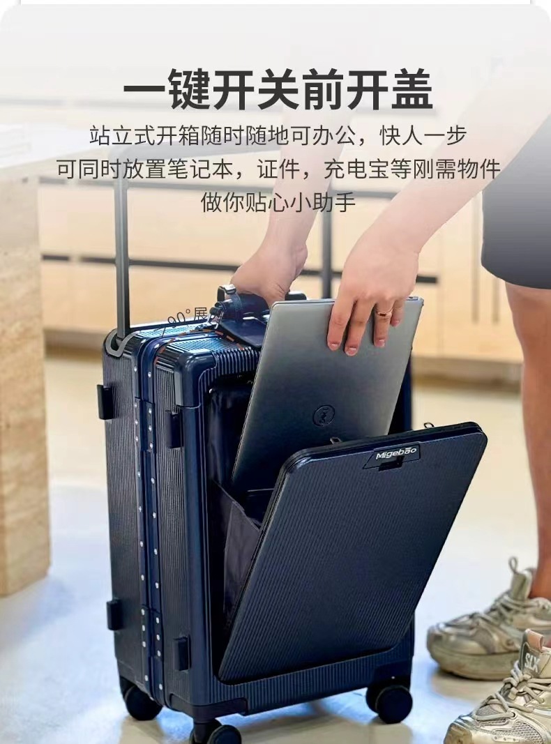 수출 알루미늄 프레임 전면 오픈 뚜껑 수하물 케이스 여성 20 인치 와이드 타이로드 보드 케이스 남성 다기능 가방 트롤리 케이스스토어 가기
