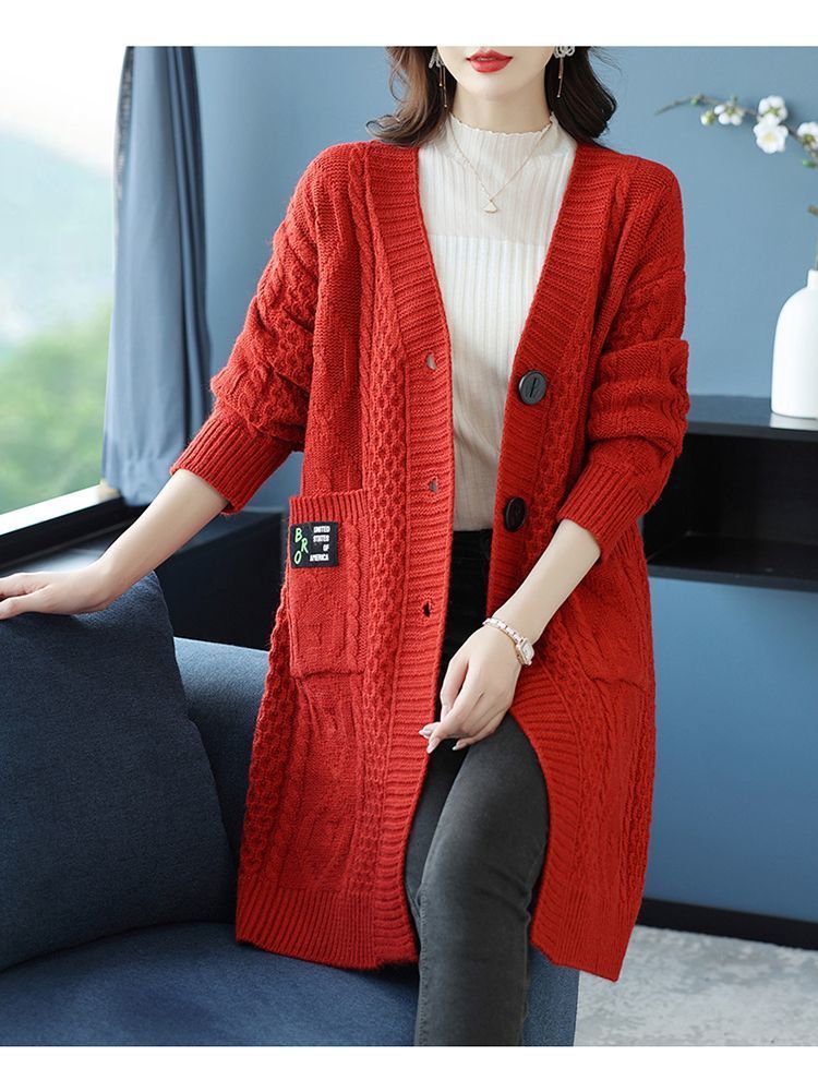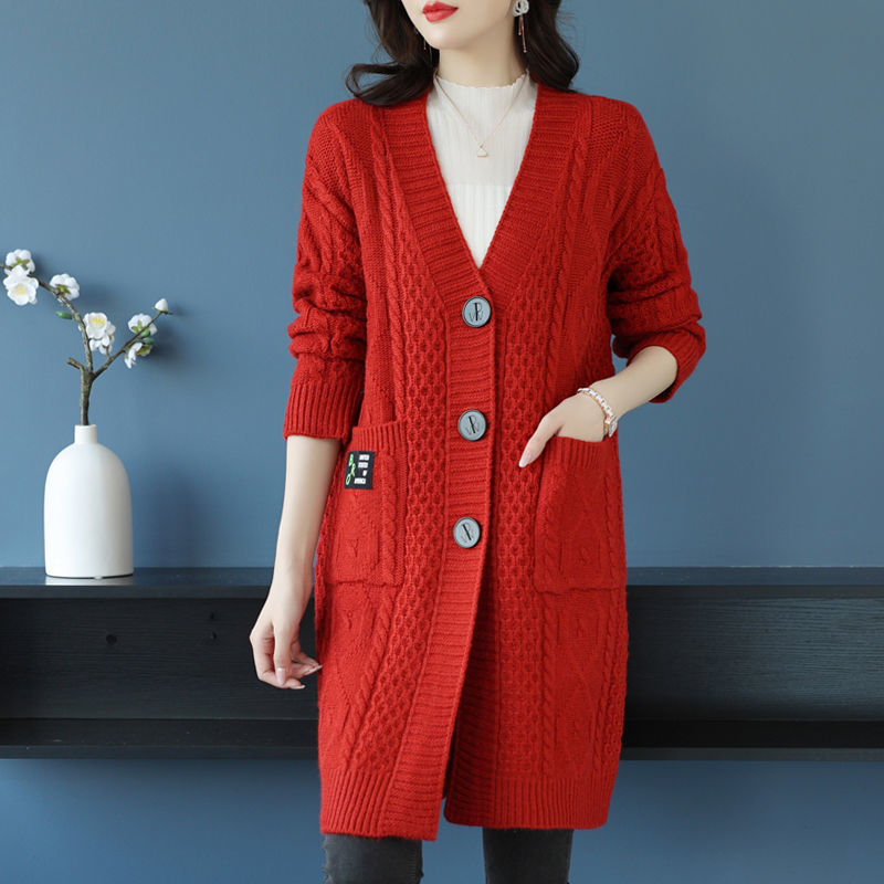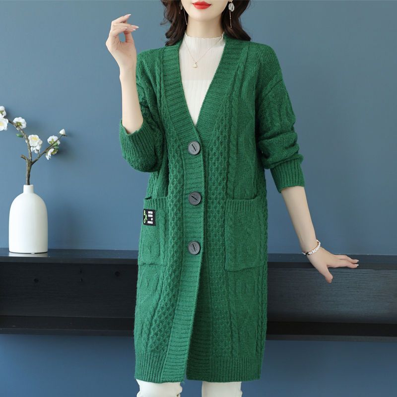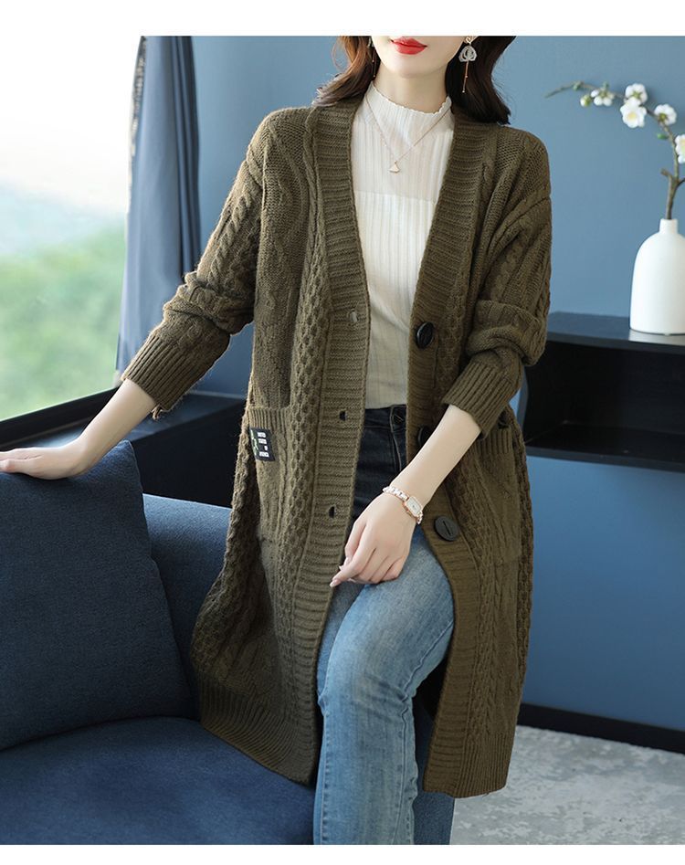 새로운 양모 카디건 중장 패션 가을과 겨울 플러스 사이즈 여성의 느슨한 거친 양모 스웨터 코트스토어 가기