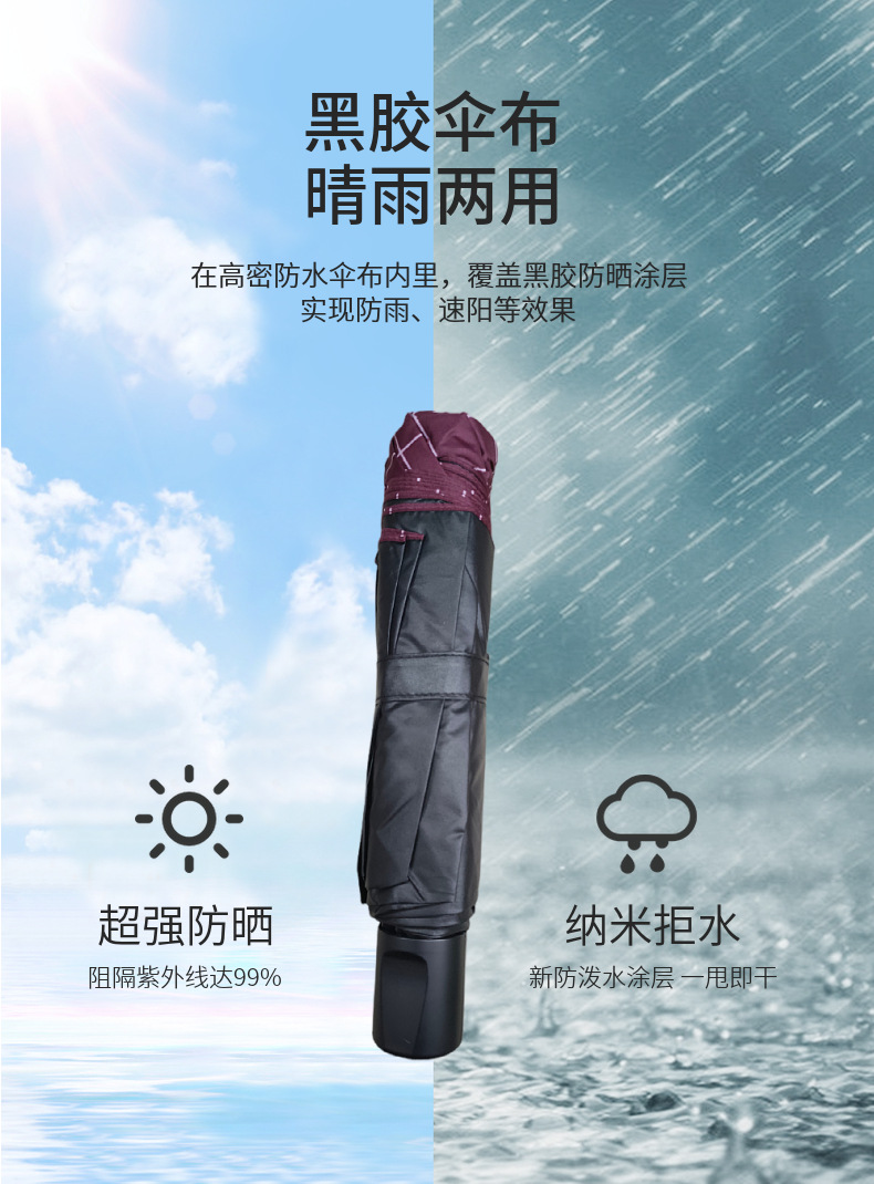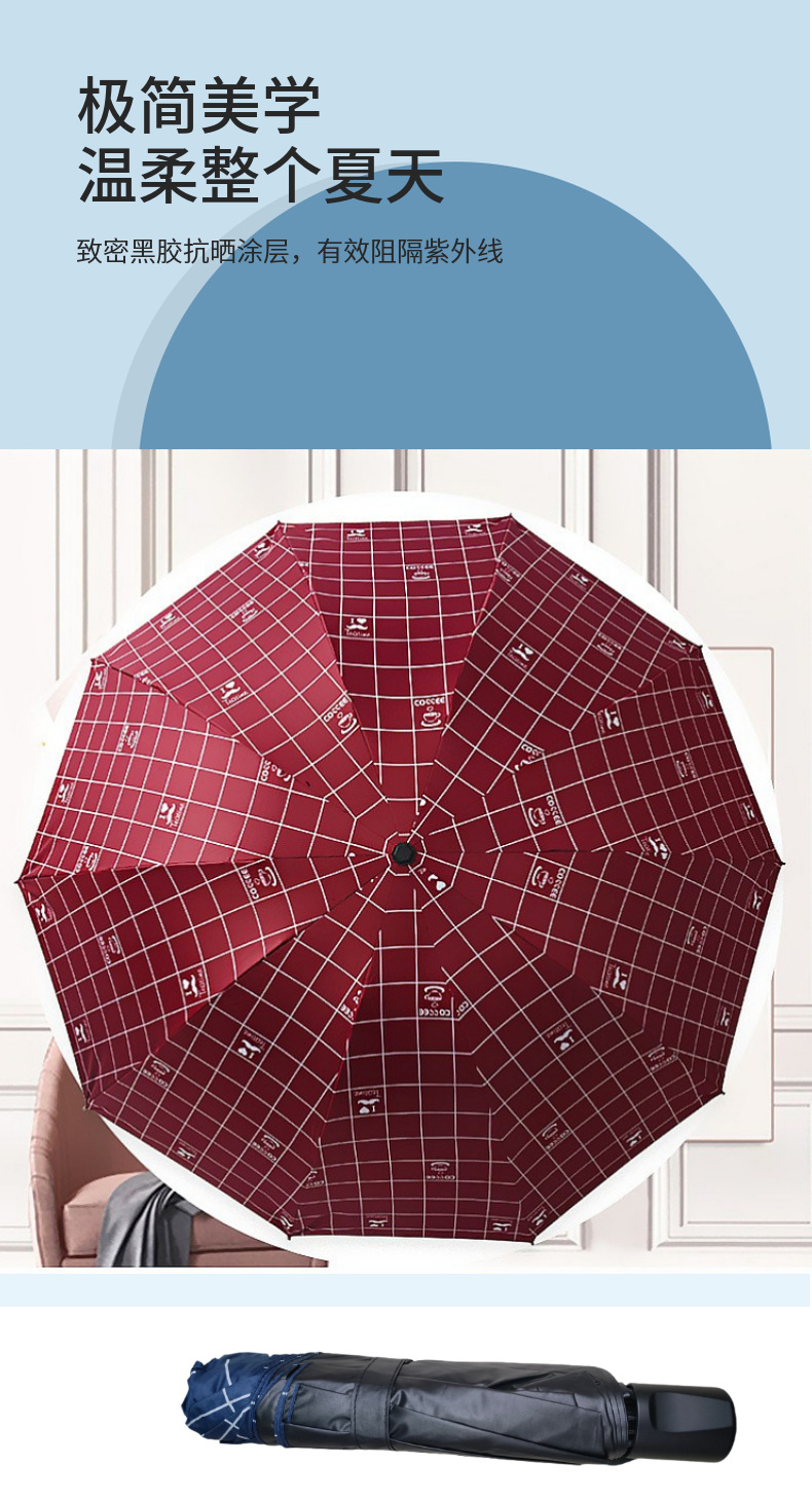 맑고 비 사용 가능 검은 우산 큰 숫자 10 뼈 3 접힌 우산 접히는 야외 햇빛 우산 대형 할인