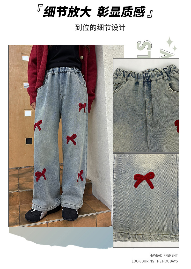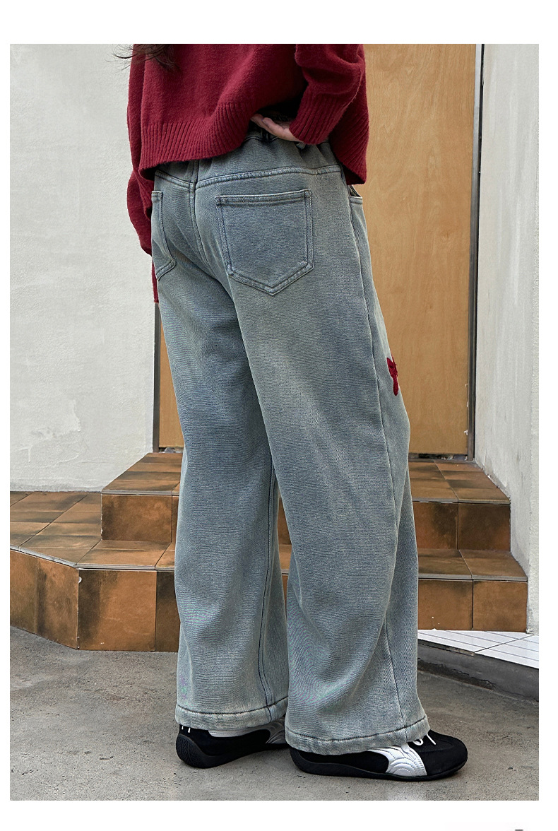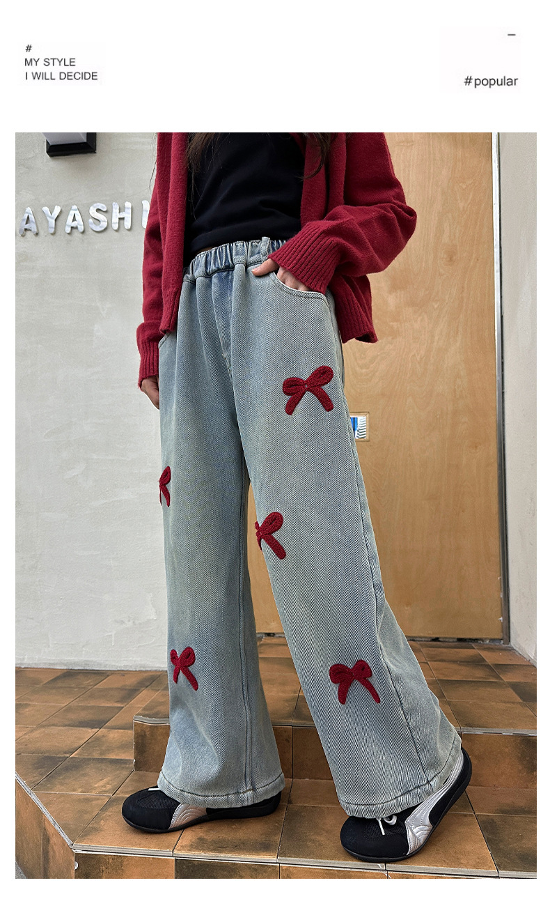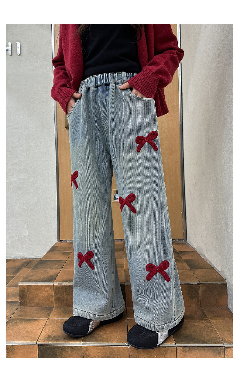 소녀 청바지 기모 가을과 겨울 2024 새로운 소녀 겨울 넓은 다리 바지 겨울 두꺼운 어린이 바지스토어 가기