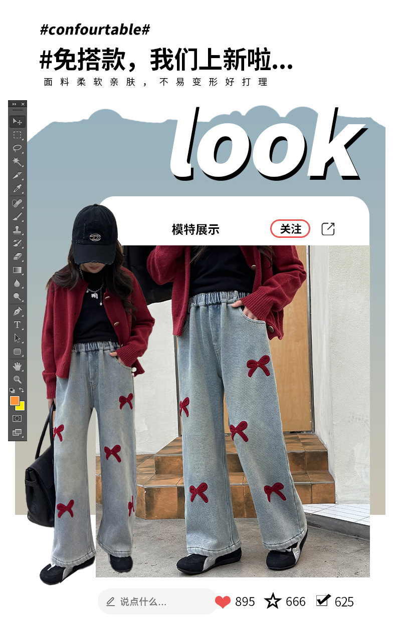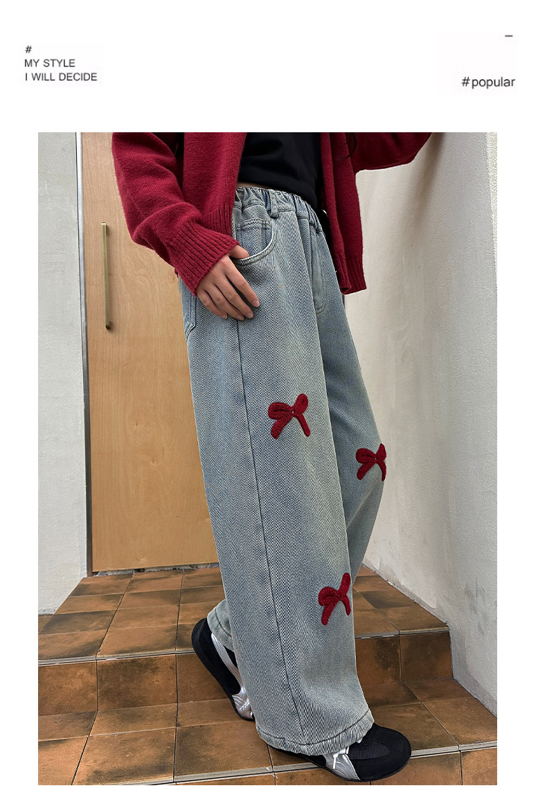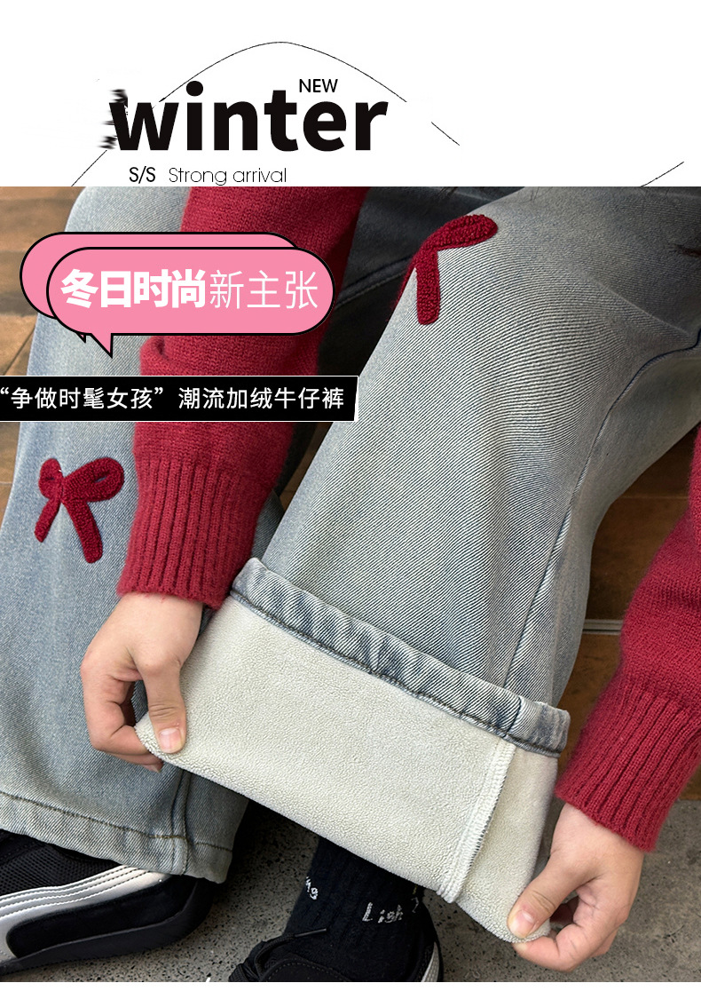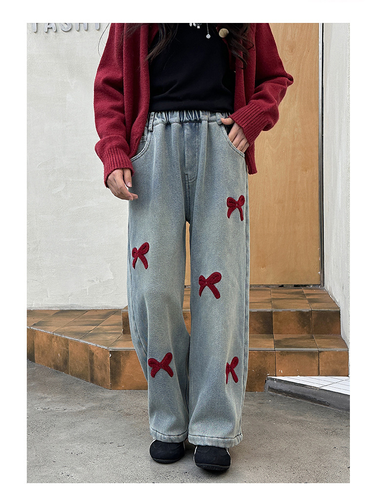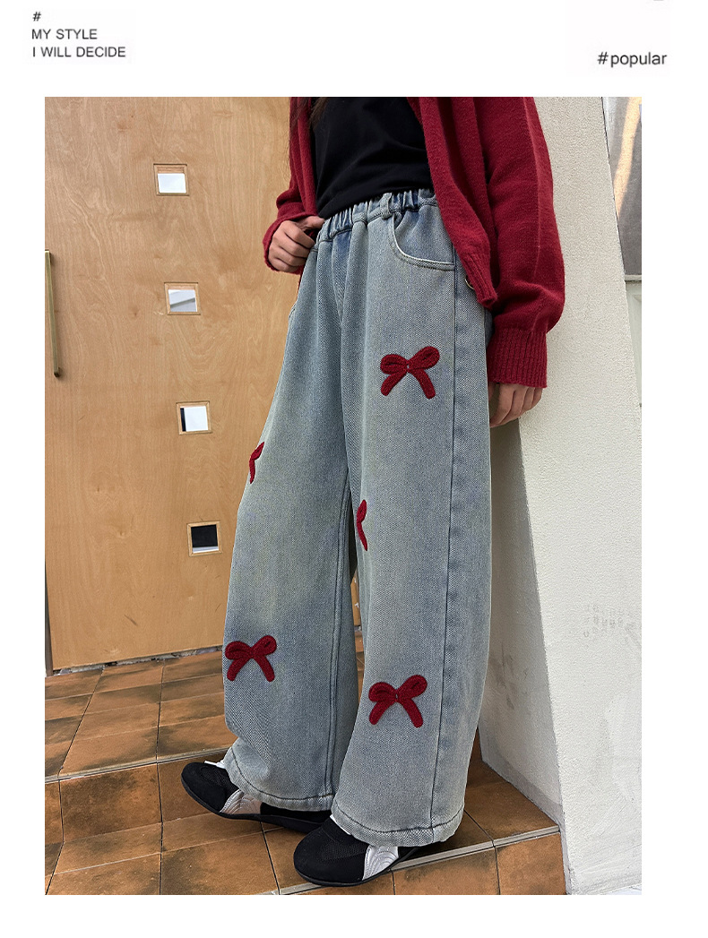소녀 청바지 기모 가을과 겨울 2024 새로운 소녀 겨울 넓은 다리 바지 겨울 두꺼운 어린이 바지스토어 가기
