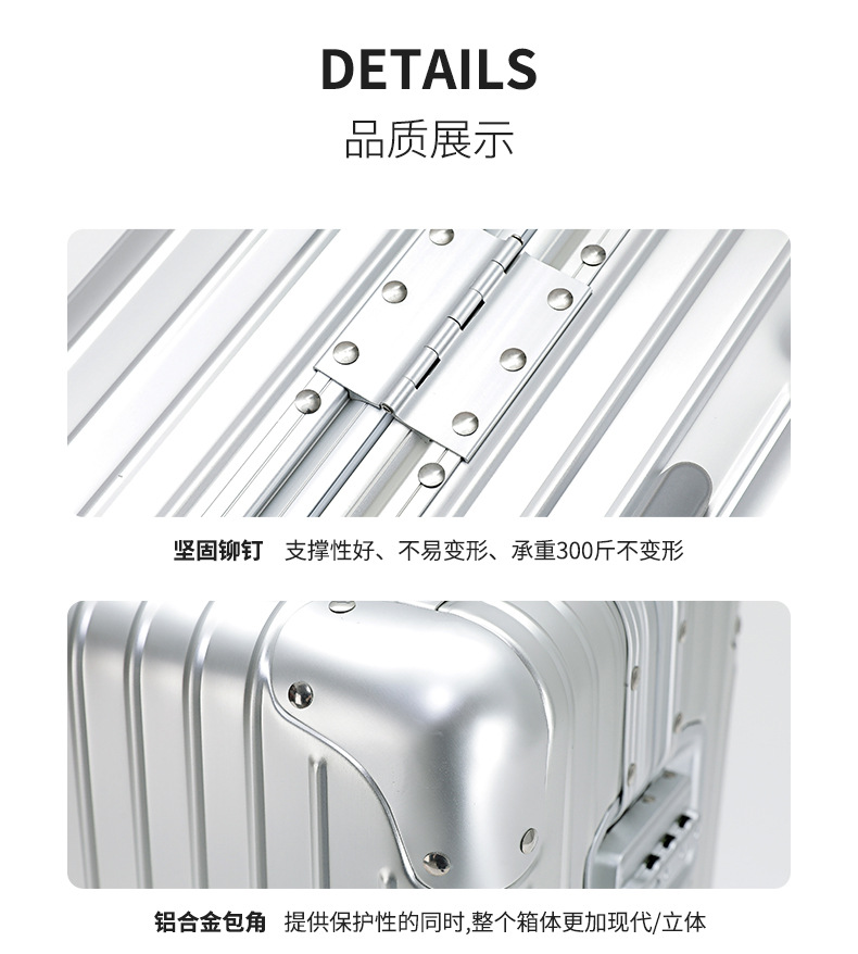 공장 직접 알루미늄 마그네슘 합금 트롤리 케이스 보편적 인 휠 암호 잠금 가방 탑승 상자 도매 머리카락 세대스토어 가기