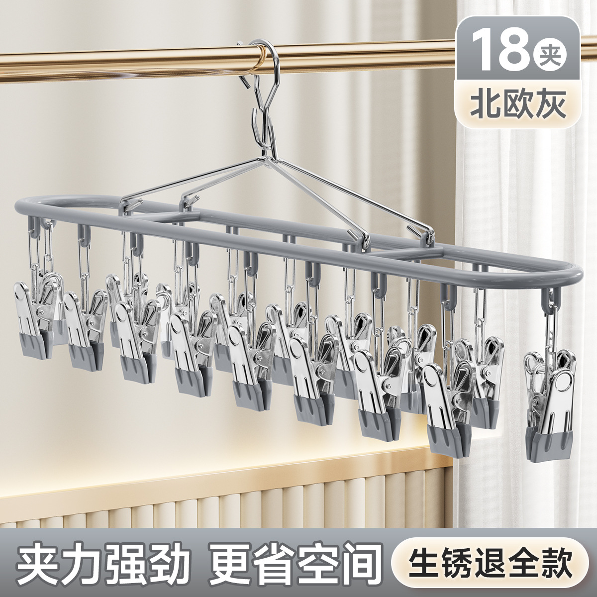 • 새롭게 업그레이드된 공간절약형 모델✅노르딕 그레이 18 클립 [강력한 클램핑력]⭐더 많은 공간을 절약하세요]®