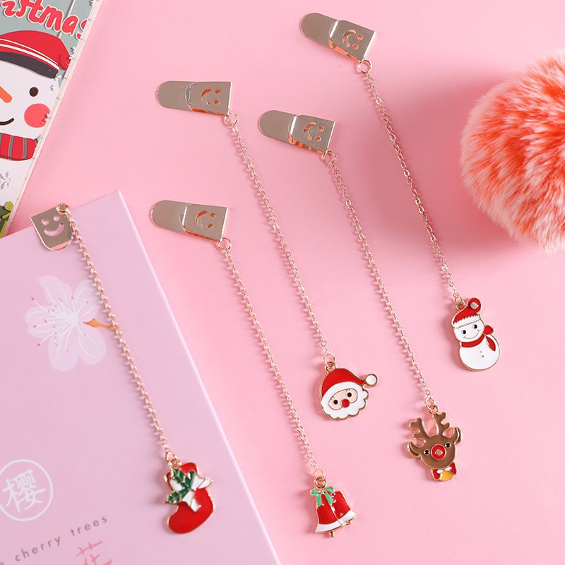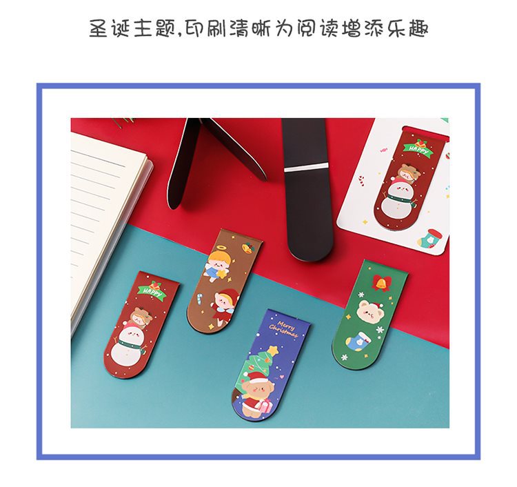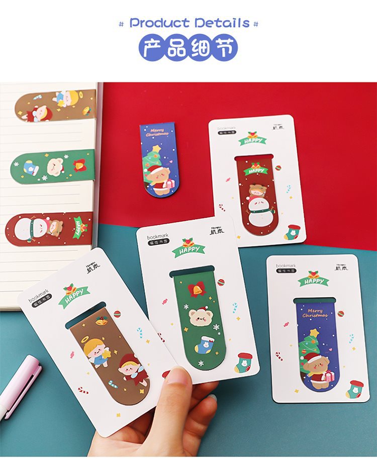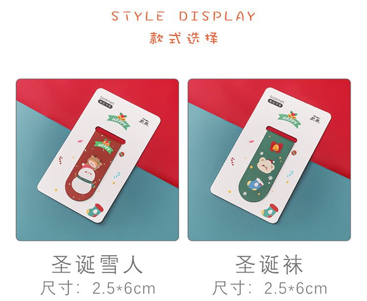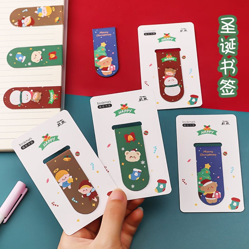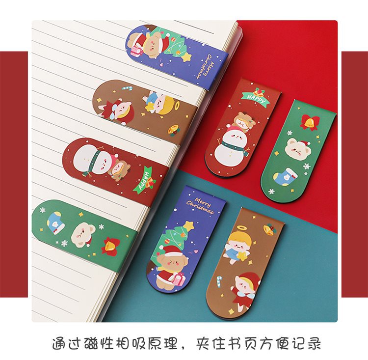 초등학생을위한 크리스마스 선물 산타 클로스 선물 창조적 인 만화 종이 마그네틱 북마크 북 페이지 클립