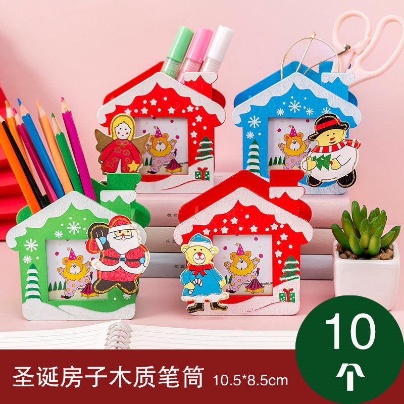 • 초콜릿 크리스마스 하우스 펜 홀더 10개