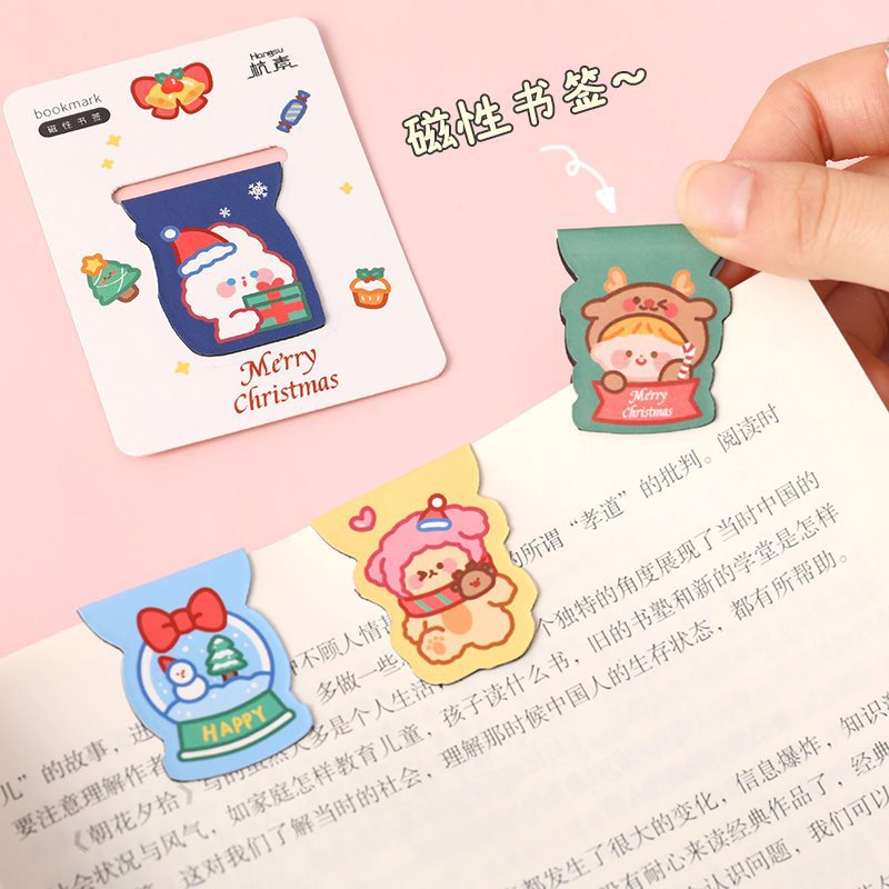 초등학생을위한 크리스마스 선물 산타 클로스 선물 창조적 인 만화 종이 마그네틱 북마크 북 페이지 클립스토어 가기