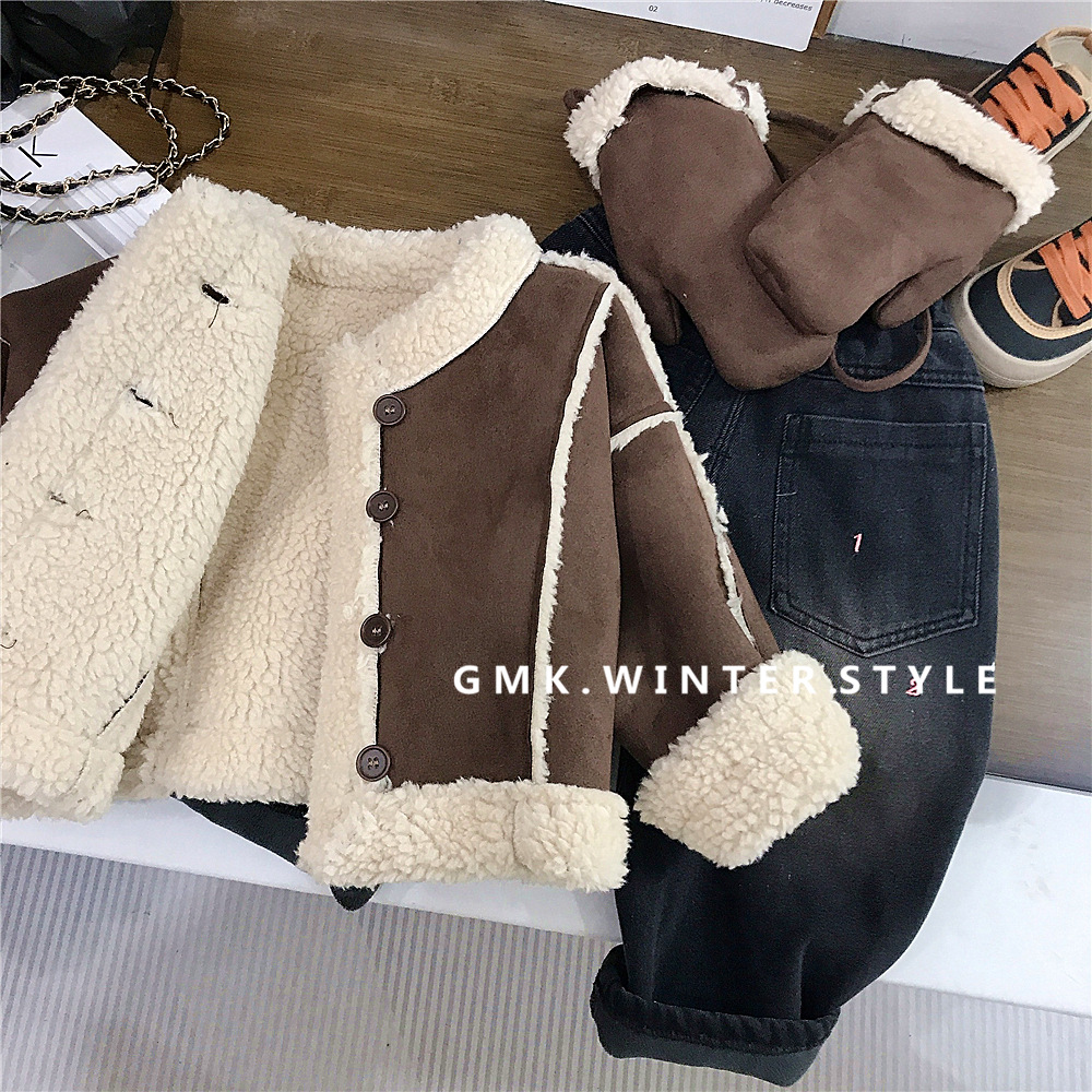 가을과 겨울 남학생과 여학생을위한 장갑이 달린 새로운 한국식 기모 자켓 기모 따뜻한 모피 코트 대외 무역스토어 가기