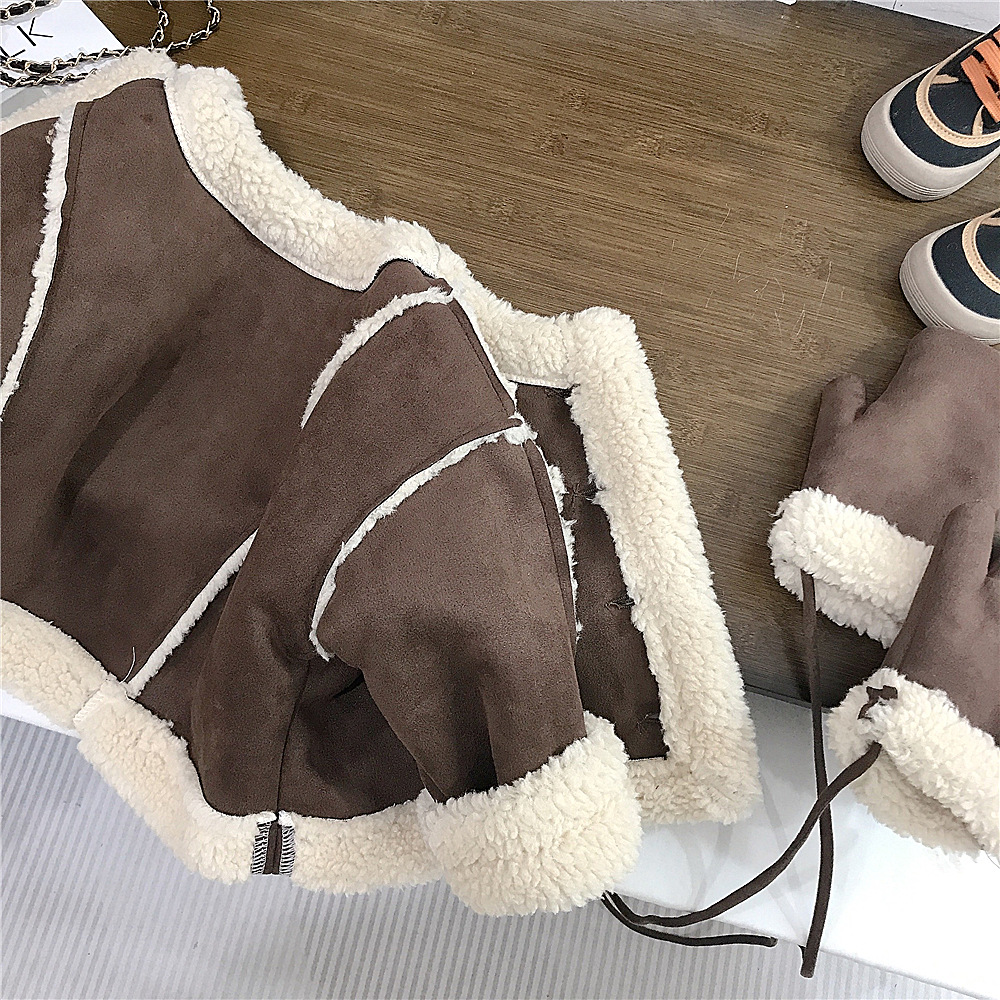 가을과 겨울 남학생과 여학생을위한 장갑이 달린 새로운 한국식 기모 자켓 기모 따뜻한 모피 코트 대외 무역