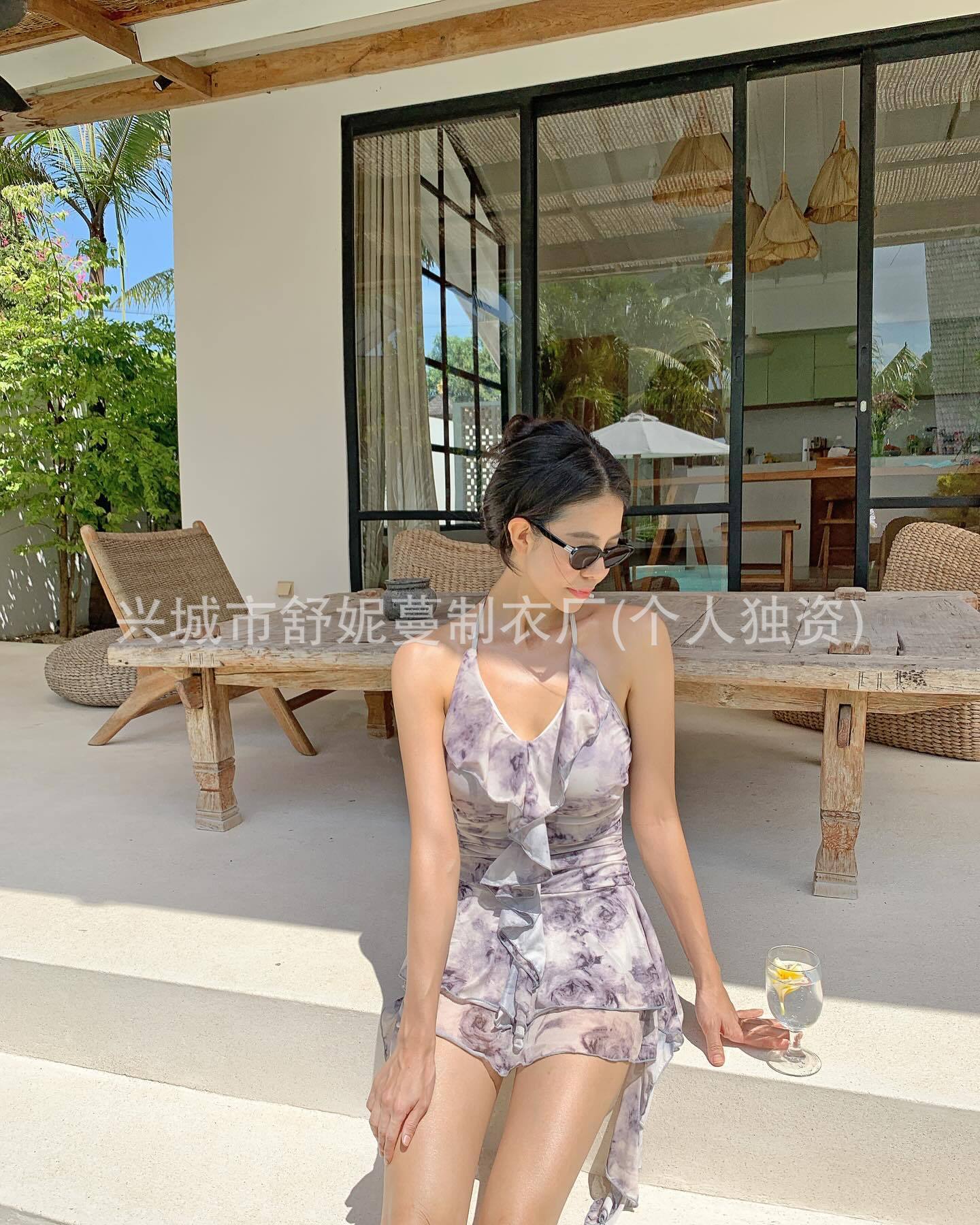 새로운 수영복 여성용 원피스 스커트 요정 벨리 커버 슬리밍 섹시한 한국 인 스타일 온천 프린트 수영복스토어 가기
