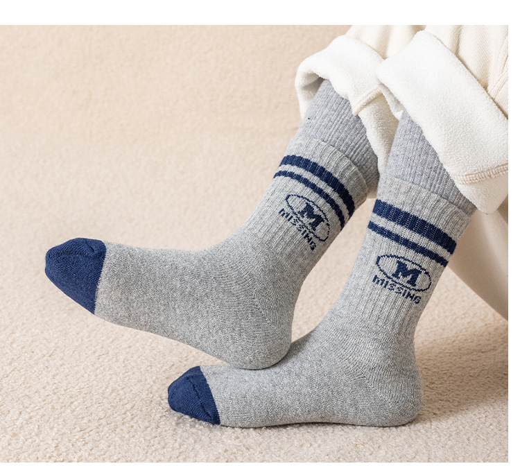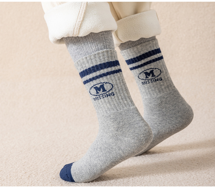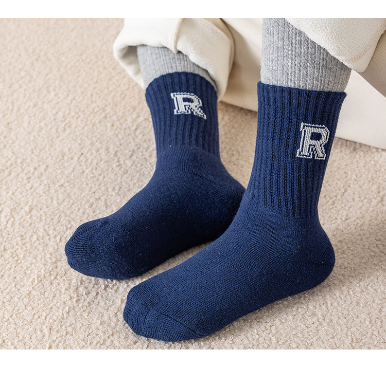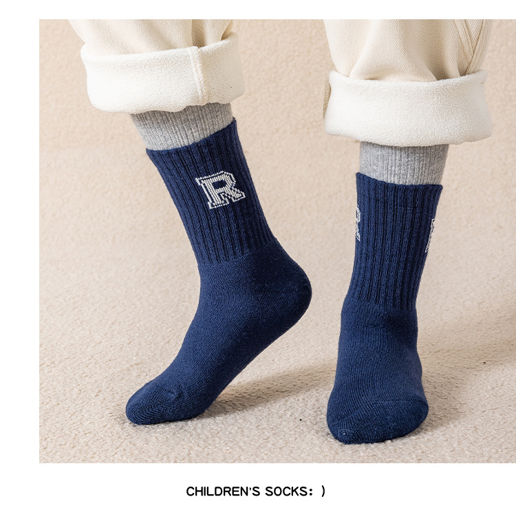 어린이 두꺼운 테리 양말 면화 겨울 따뜻한 소년과 소녀 아기 1-12 세 줄무늬 문자 양말 튜브 면 양말