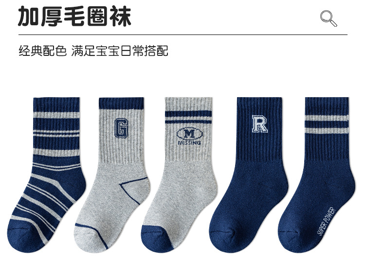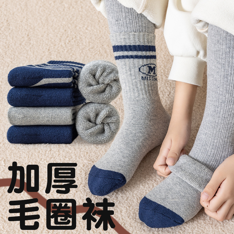 어린이 두꺼운 테리 양말 면화 겨울 따뜻한 소년과 소녀 아기 1-12 세 줄무늬 문자 양말 튜브 면 양말스토어 가기