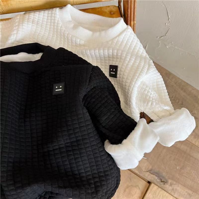 소년 겨울 옷베이스 셔츠 소녀 아기의 겨울 기모 두꺼운 스웨터 어린이 서양식 유행 따뜻한 탑