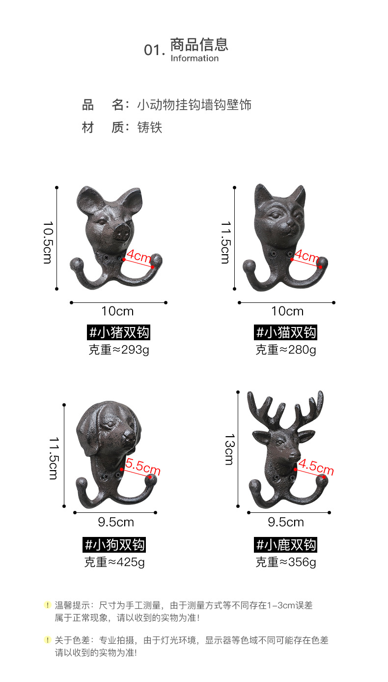 국경 간 복고풍 주철 공예 철 동물 후크 바 정원 샘플 전시실 개성 벽 교수형 벽 장식
