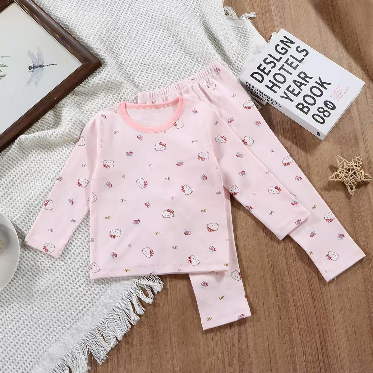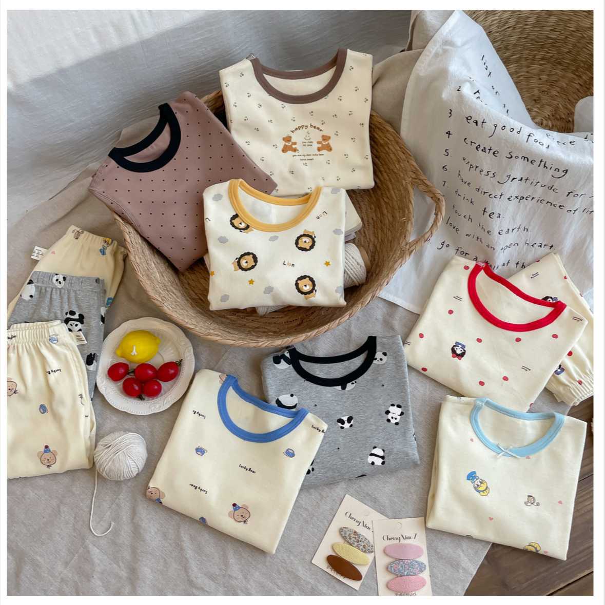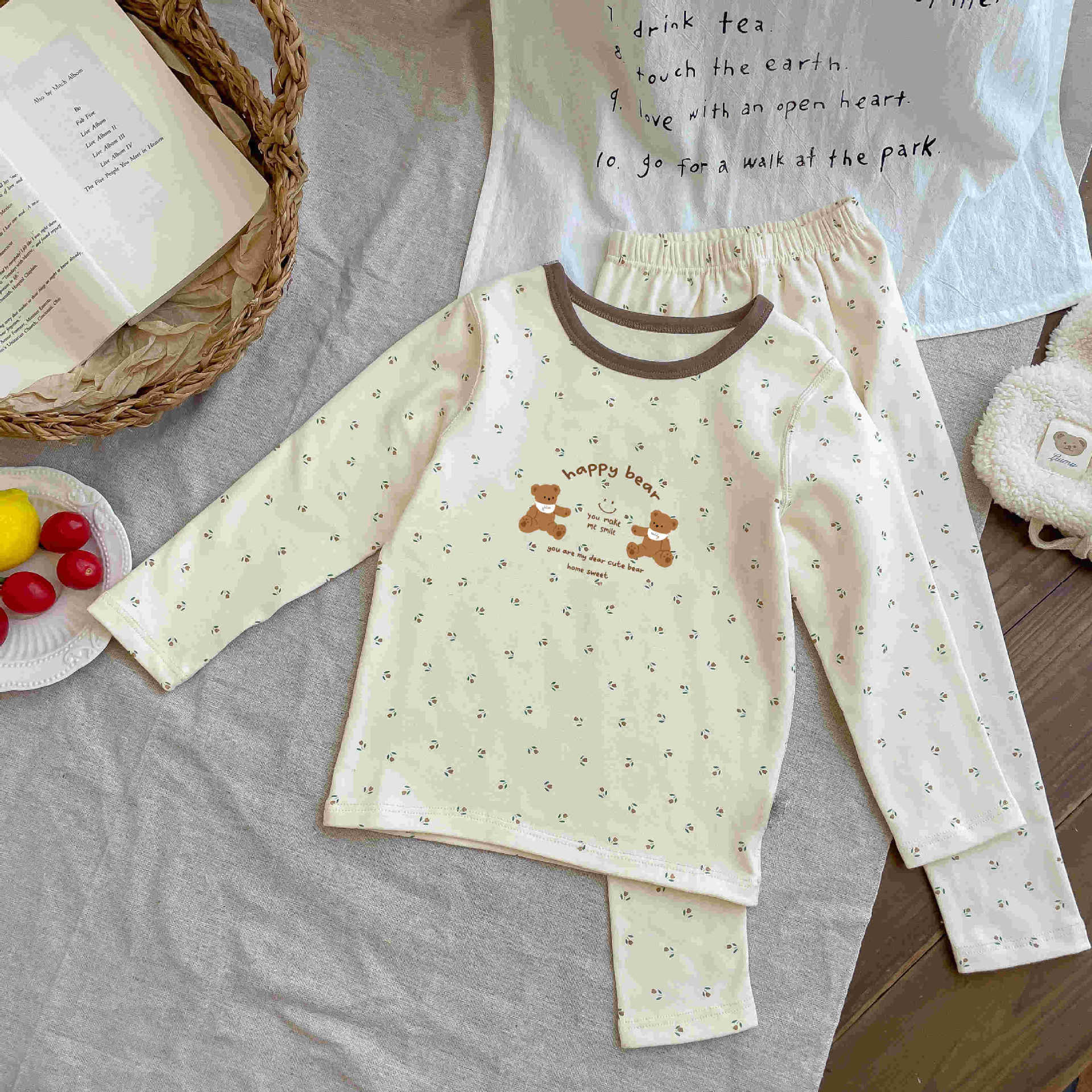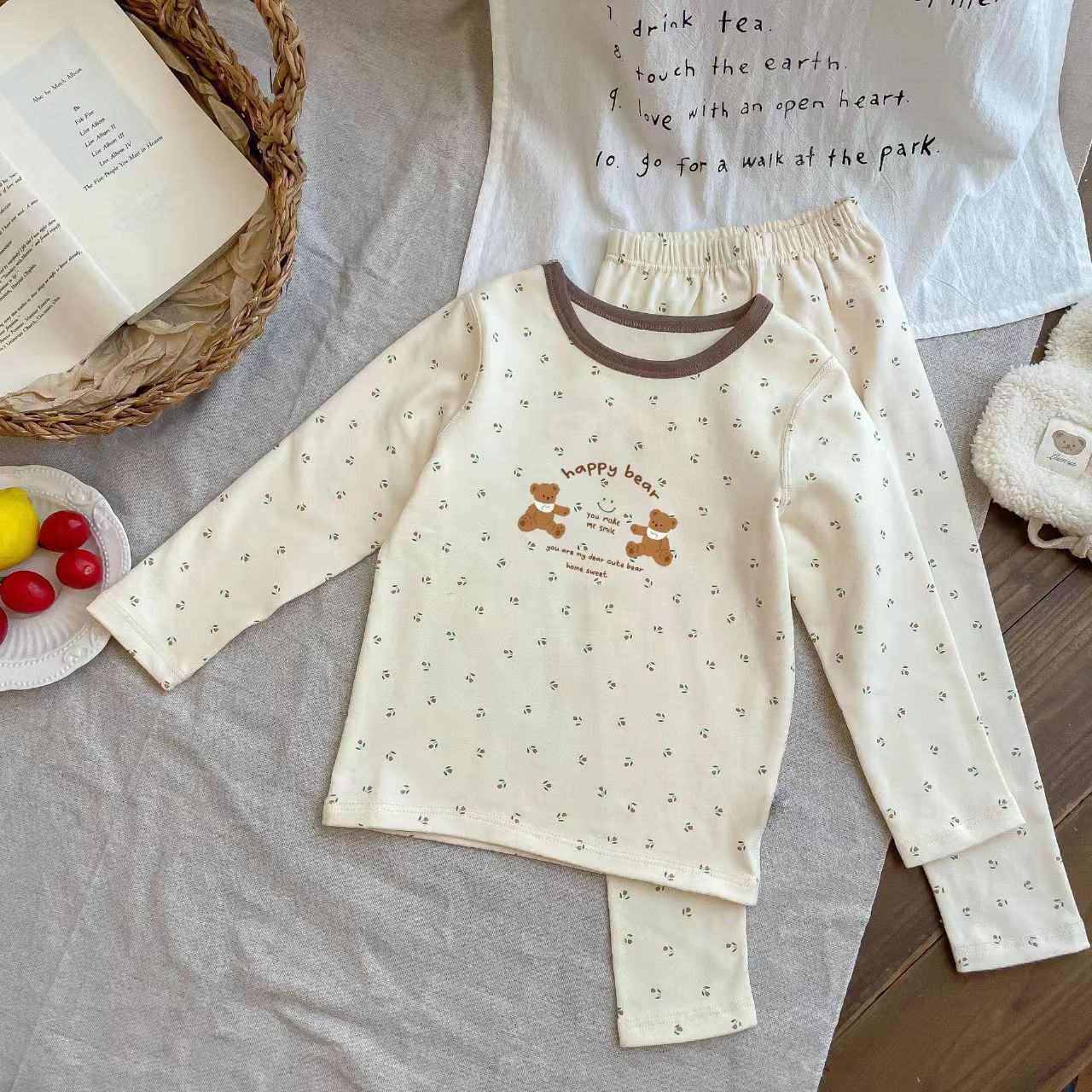 어린이 양모 풀업 가정 의류 2025 가을, 겨울 스타일 소년과 소녀 아기 만화 귀여운 잠옷 두 조각스토어 가기