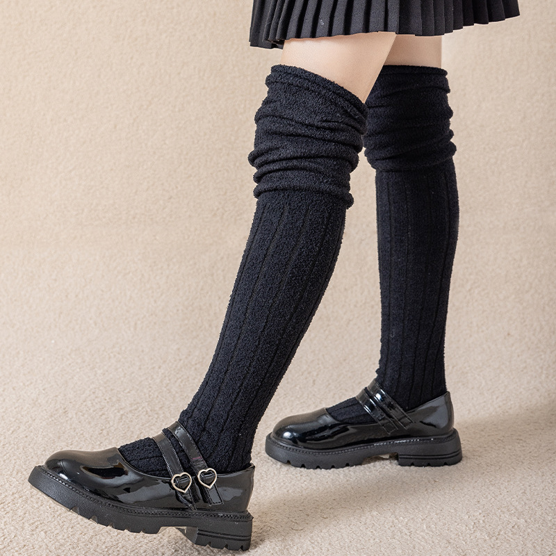 겨울 소녀 두꺼운 핫 벨벳 오버 더 무릎 양말 긴 튜브 스택 스타킹 중 큰 어린이 무릎 패드 흑백 학생 높은 튜브 코튼 양말